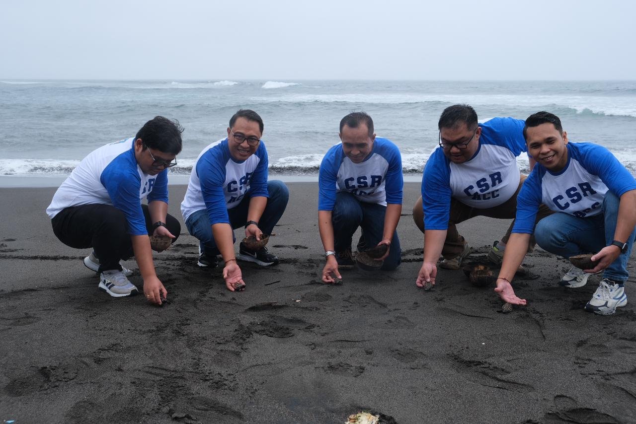 SinarHarapan.id – (Ki-Ka) ARManagement Head ACC Renon Dedi Hasiholan, Branch Manager ACC Denpasar Ary Wiadnyana, AR Management Head ACC Denpasar Wisnu Agung, Customer Retention & Service Head ACC Denpasar Eka Candra dan Customer Retention & Service Head ACC Abdullah Aziz saat melepas tukik di Pantai Saba Asri, Gianyar, Bali. dok ACC