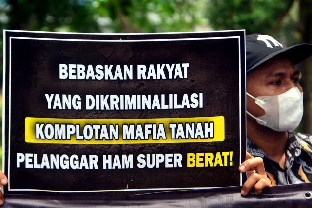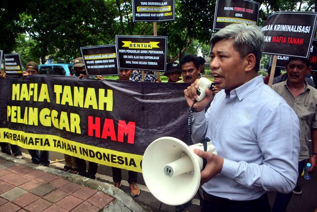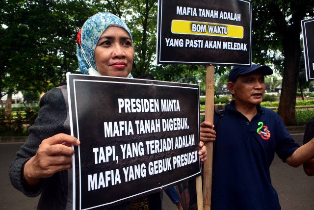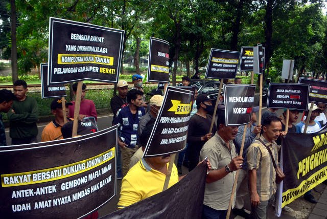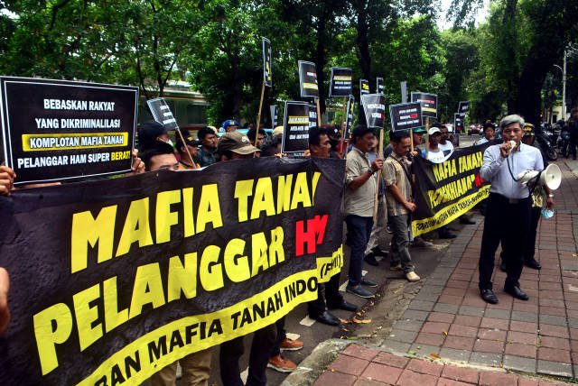SinarHarapan.id – Massa yang tergabung dalam Forum Korban Mafia Tanah Indonensia (FKMTI) menggelar unjukrasa di Komnas HAM, Jakarta, Senin (30/1/2023). Dalam aksinya mereka mendesak Komnas HAM agar membebaskan sejumlah kasus  kriminalisasi terhadap anggotanya yang sebetulnya adalah pemilik sah tanah. Namun tanah mereka menjadi incaran mafia tanah karena lokasi yang strategis dan bernilai jual tinggi. Foto SH/Elvis Sendouw