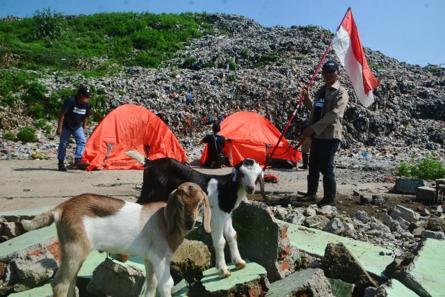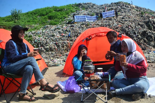 SinarHarapan.id – Relawan melakukan aksi kemah di dekat area tumpukkan sampah TPA Cipayung, Depok, Jawa Barat, Rabu (31/5/2023). Aksi tersebut sebagai bentuk sindiran kepada Pemerintah Kota Depok akibat sampah yang menumpuk sudah melebihi kapasitas Tempat Pembuangan Akhir (TPA) Cipayung. Foto SHID/Elvis Sendouw