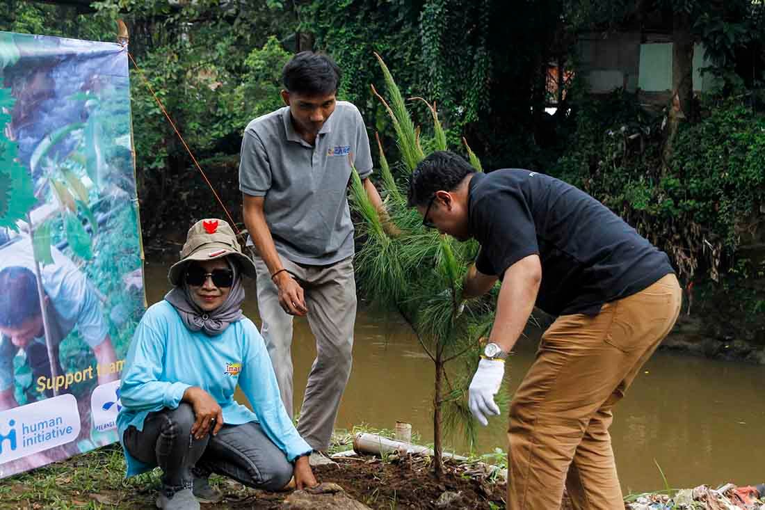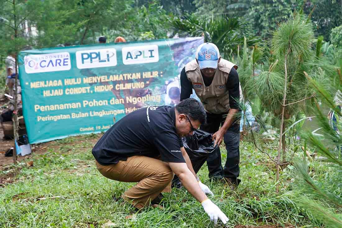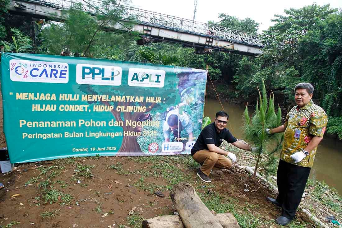 SinarHarapan.id – Memperingati Bulan Lingkungan Hidup Sedunia, PT Prasadha Pamunah Limbah Industri (PPLI) bersama sejumlah mitra seperti Indonesia CARE, AJPLI, PBI, Human Initiative, dan Komunitas Baca Ciliwung (KBC) menggelar aksi tanam pohon dan bersih-bersih Daerah Aliran Sungai (DAS) Ciliwung, Condet, Jakarta Timur, Kamis (19/6/2025). Sebanyak 40 pohon buah ditanam di bantaran sungai, sekaligus digelar diskusi lingkungan bertajuk Ngopling (Ngobrol Peduli Lingkungan) yang melibatkan puluhan relawan, wartawan, dan karyawan PPLI.