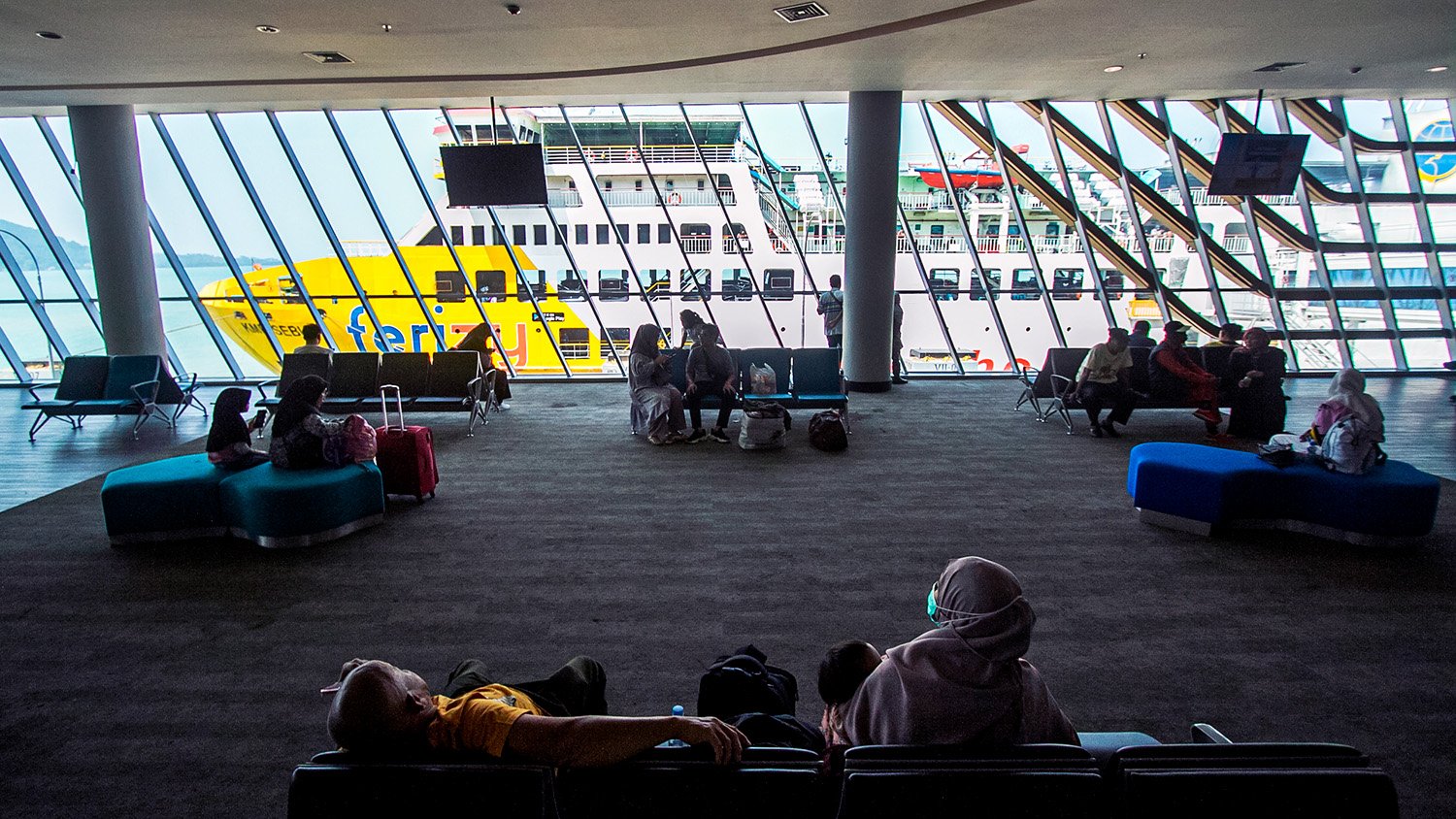 Sejumlah fasilitas Dermaga Eksekutif Pelabuhan Bakauheni dinikmati para calon penumpang penyeberangan Selat Sunda