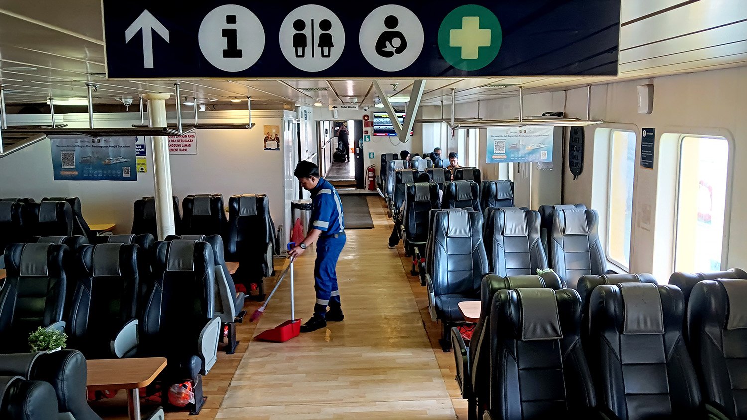 Kebersihan kabin kapal menjadi prioritas menunjang kenyamanan pengguna jasa.