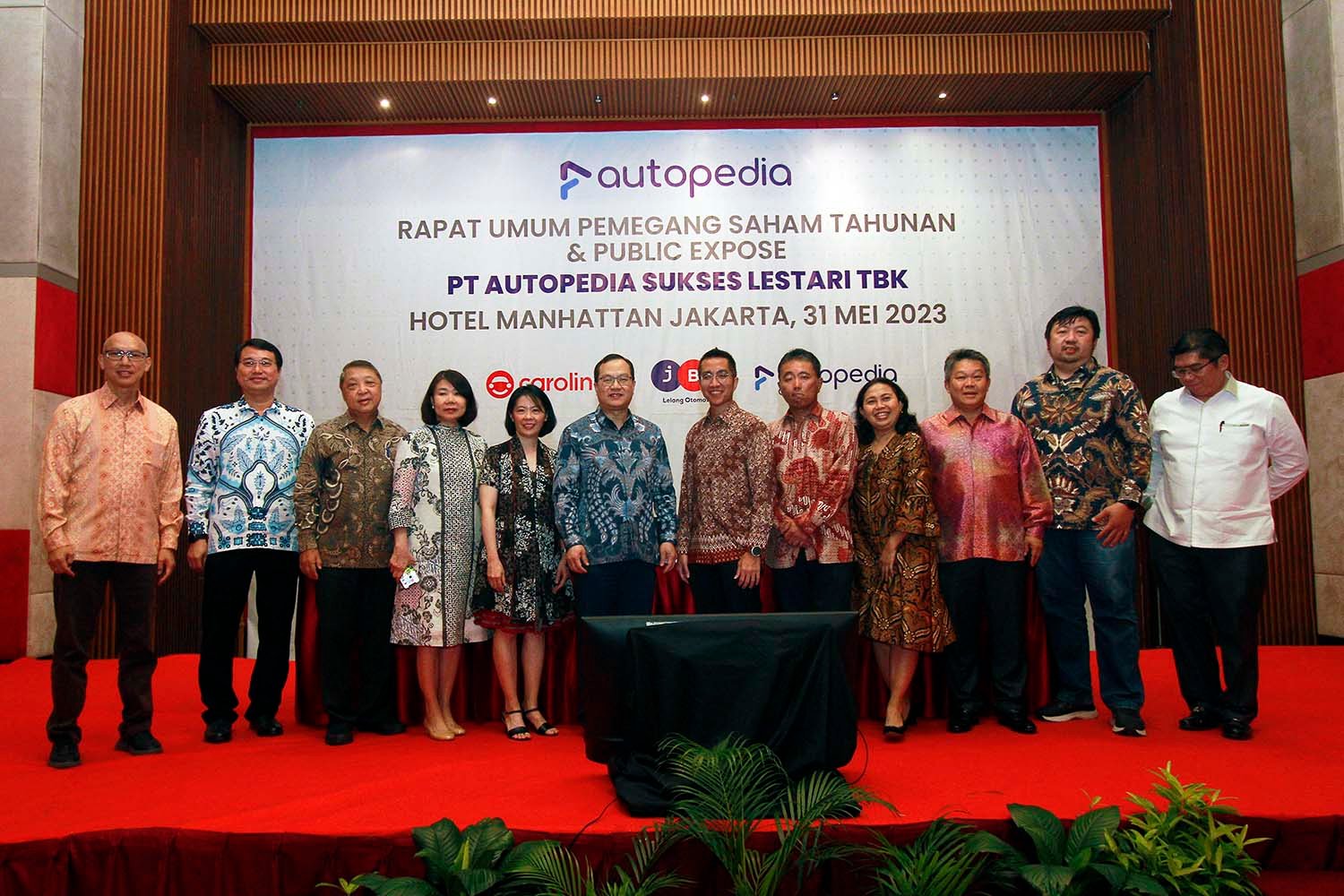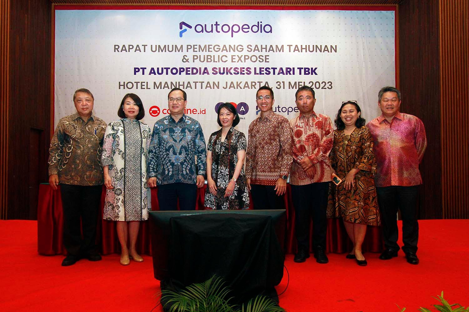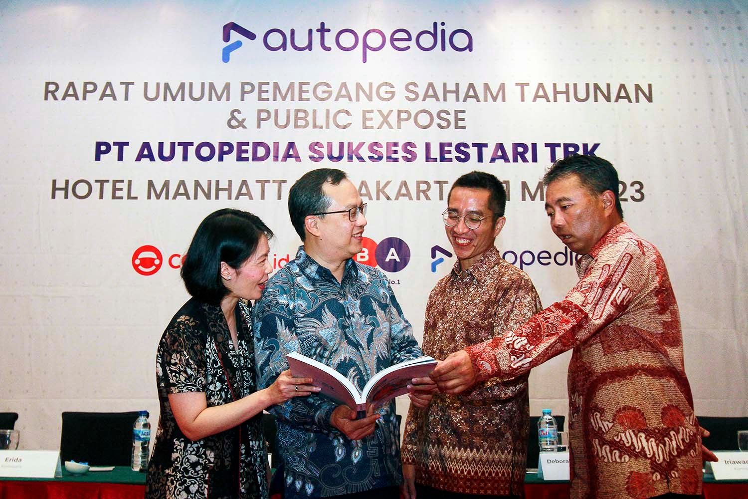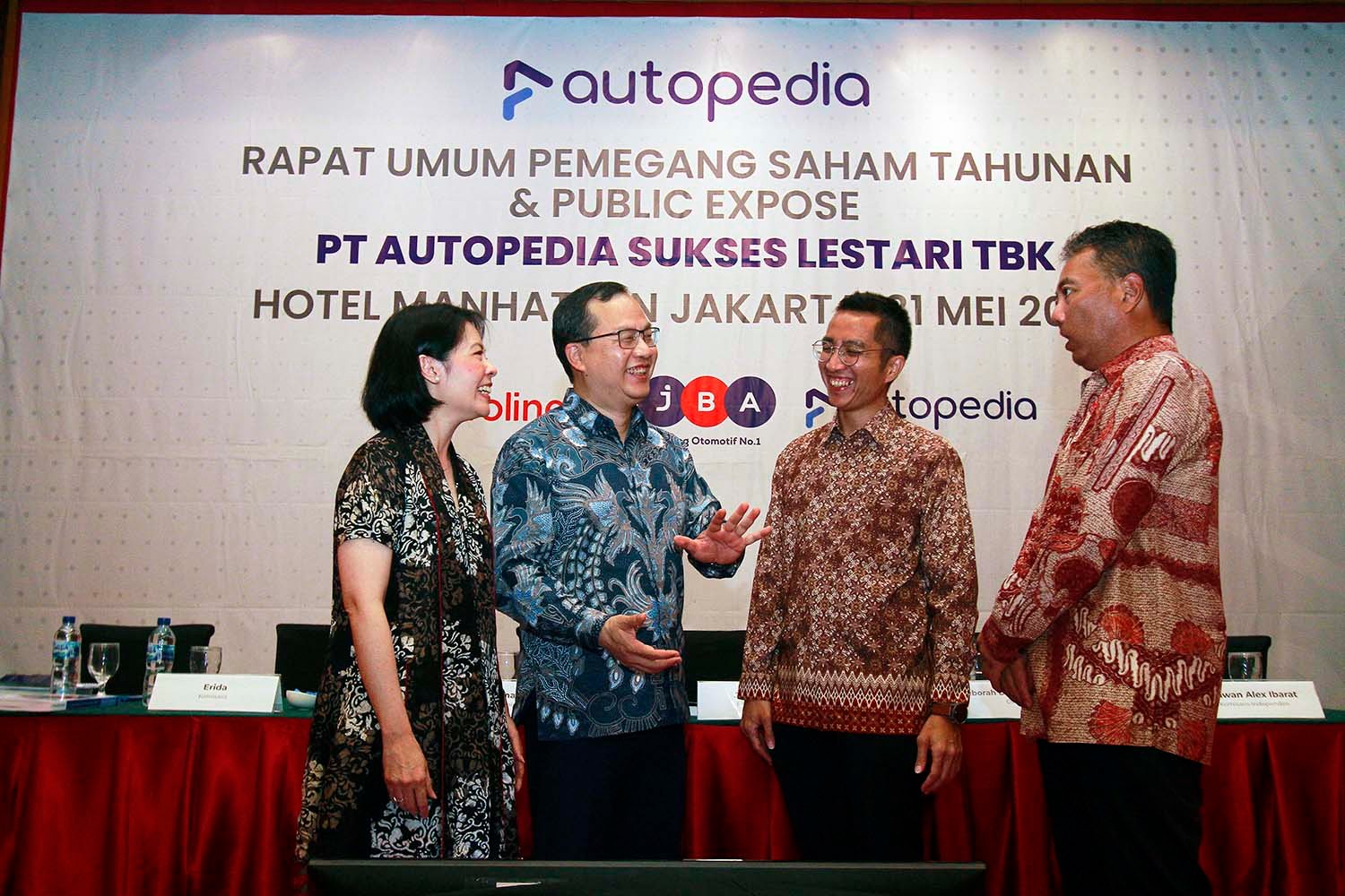 SinarHarapan.id – Jajaran Direksi PT Autopedia Sukses Lestari Tbk (ASLC) Direktur Debora Debianti Sugiharto, Direktur Utama Jany Candra, Direktur Armeza Farhansyah Umar, Direktur Kazuhiro Shioyama berbincang seusai Public Expose di Jakarta, Rabu (31/5/2023). ASLC emiten perdagangan otomotif omnichannel yang bergerak di bidang penjualan retail mobil bekas (Caroline.ID) dan bisnis lelang (JBA Indonesia), optimis pendapatan tahun 2023 akan tumbuh positif seiring transaksi mobil bekas yang semakin bergairah.