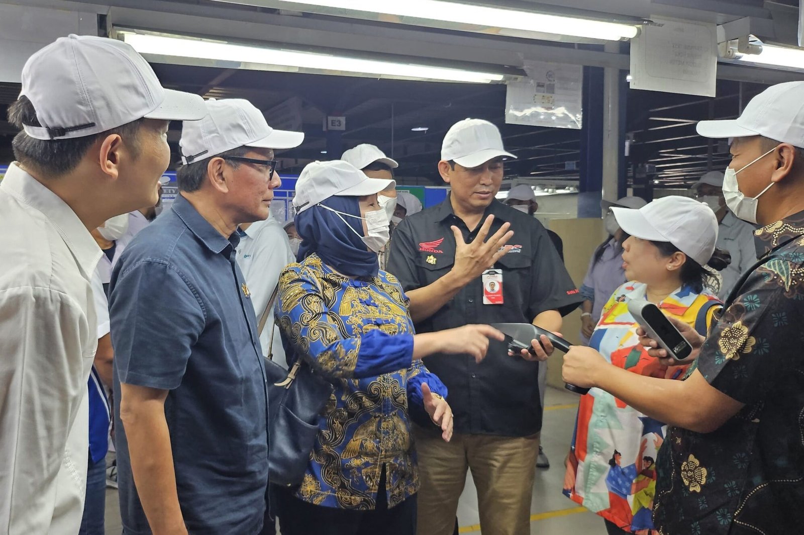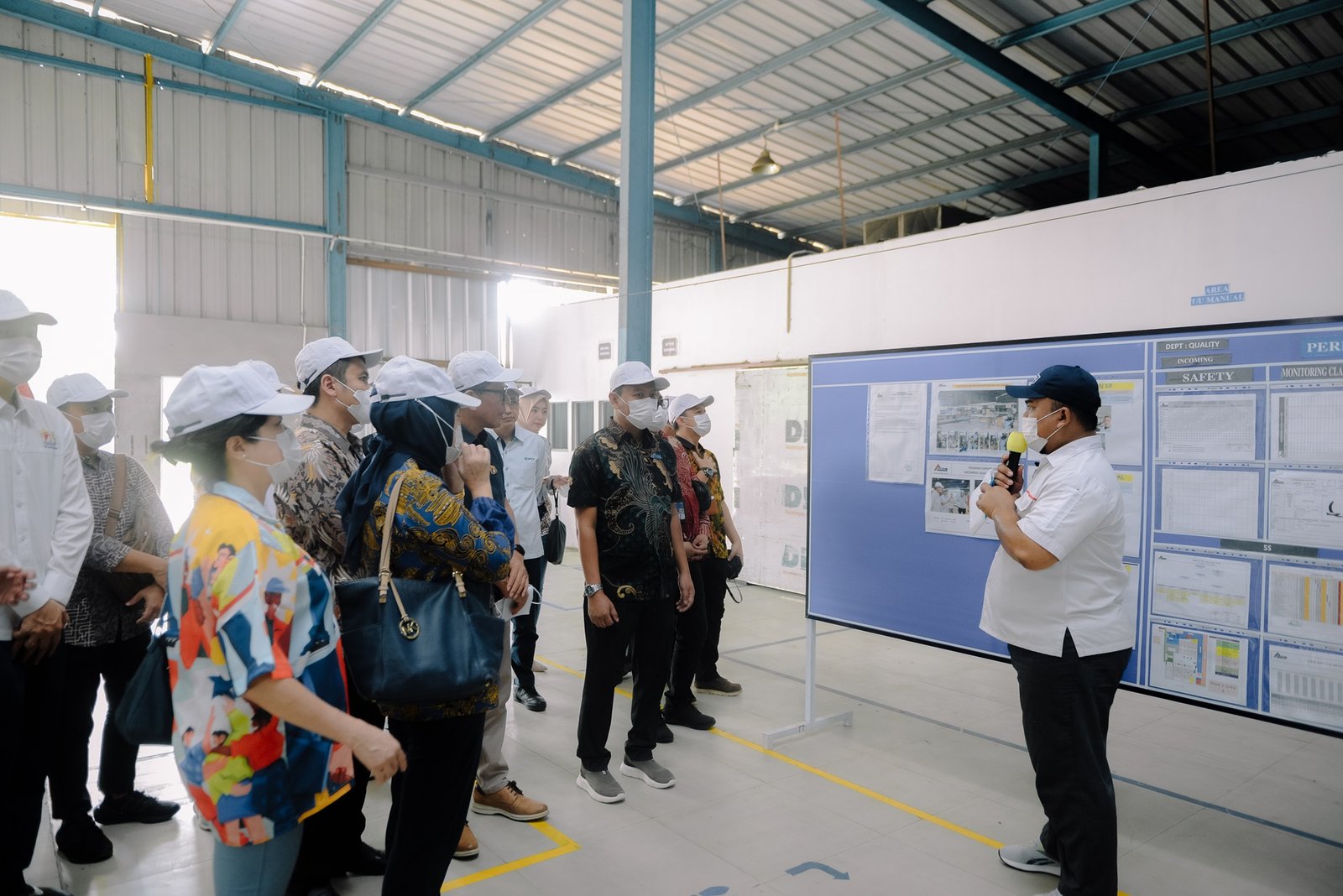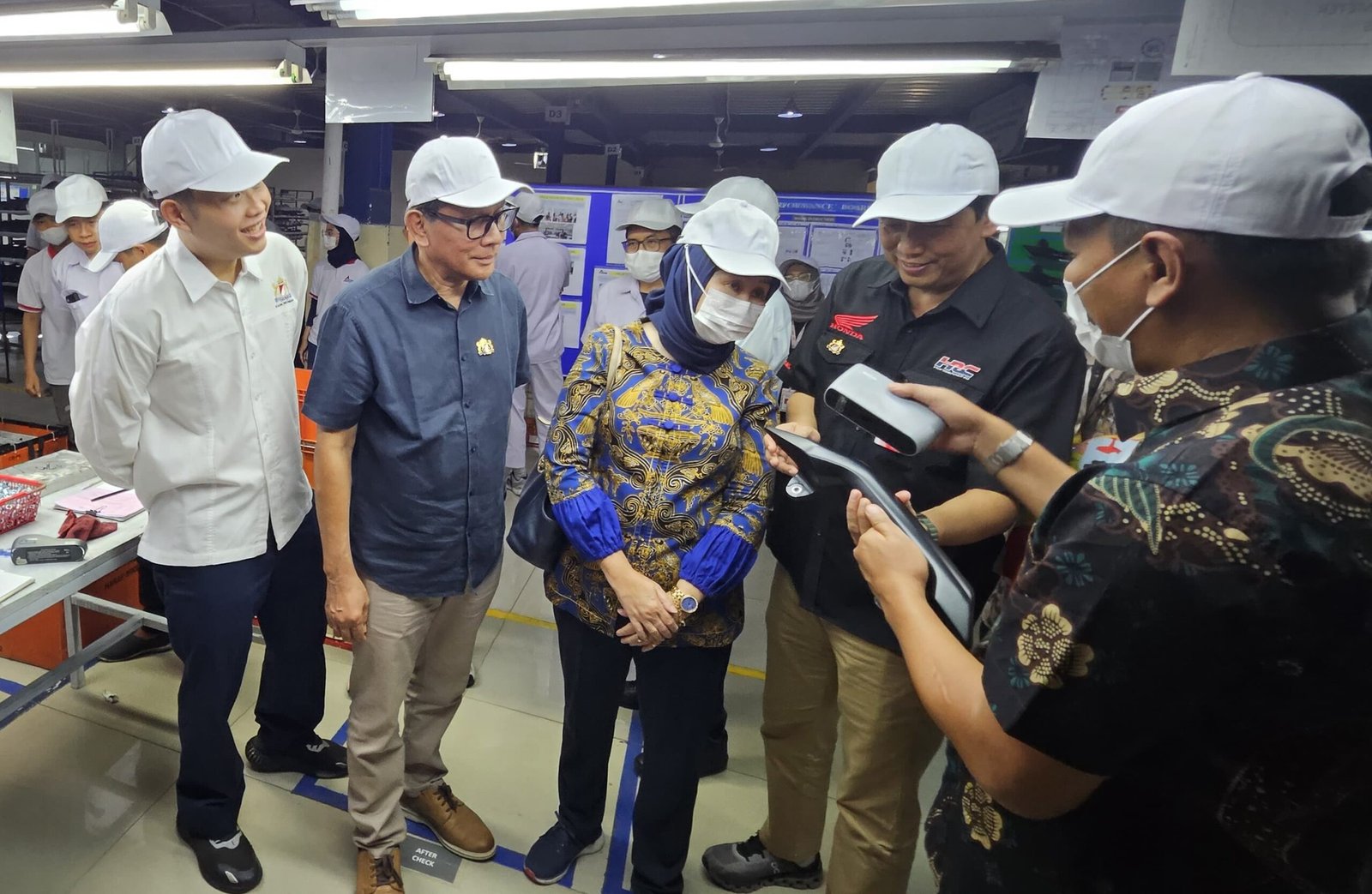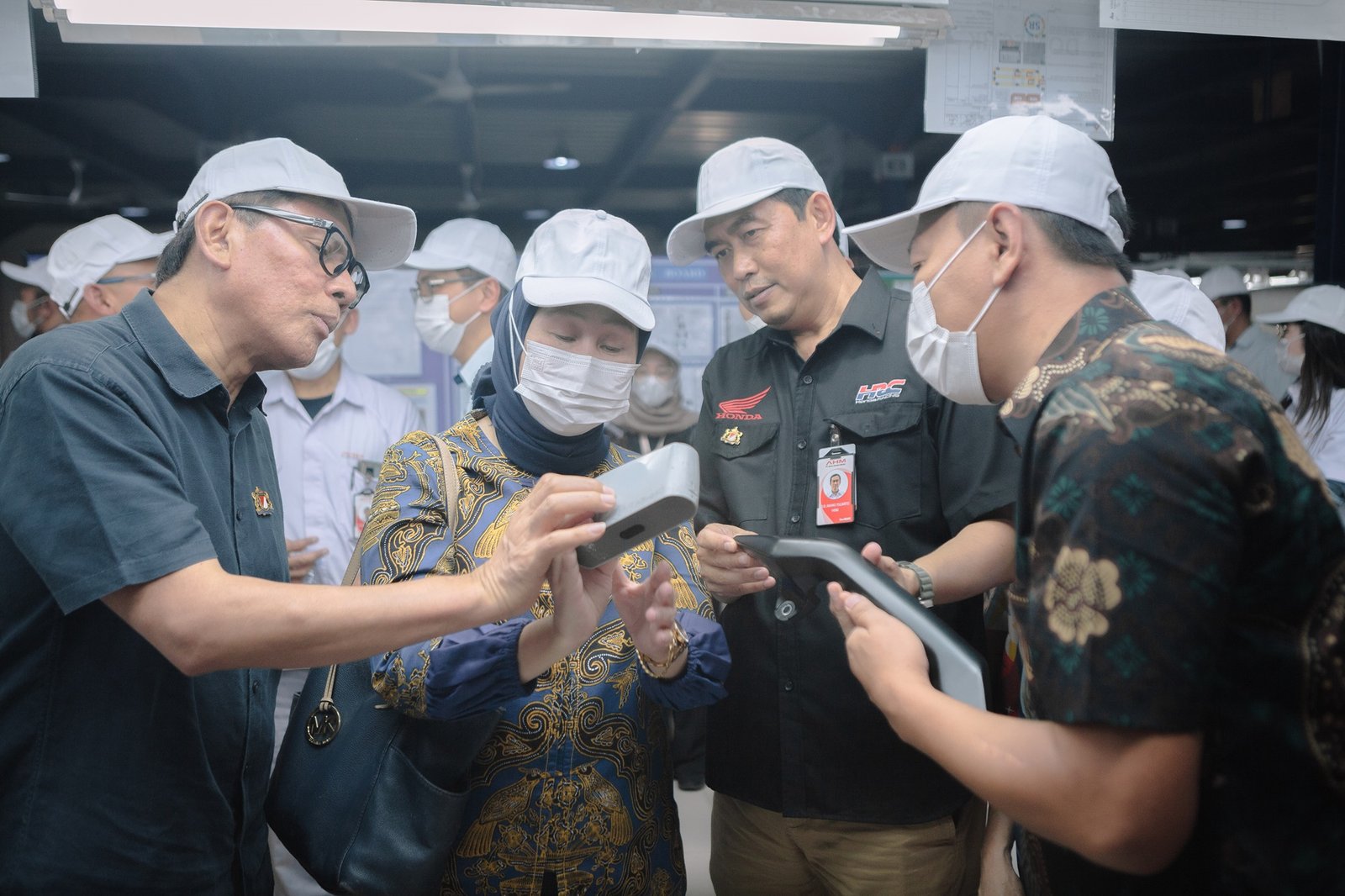 SinarHarapan.id – Direktur Operasional IKM binaan Astra melalui Yayasan Dharma Bhakti Astra (YDBA), PT Arkha Industries Indonesia, Bagus Setiawan (kanan) menunjukkan hasil improvement nya dalam proses painting kepada Ketua Pengurus YDBA Rahmat Samulo (kiri), Direktur Industri Kecil dan Menengah Logam, Mesin, Elektronika dan Alat Angkut Kemenperin RI Dini Hanggandari, (kedua kiri) dan Quality Assurance Head PT Astra Honda Motor Setyo Budi Anang Yuliarto (kedua kanan) pekan lalu di Purwakarta. Sejak November 2022, Astra melalui YDBA dan PT AHM bersama Kemenperin RI dan KADIN Indonesia berkomitmen untuk menjalankan program pengembangan rantai pasok yang melibatkan IKM dan tier 1 PT AHM. Salah satu IKM terlibat, yaitu PT Arkha Industries Indonesia yang men-supply jasa paintingnya kepada PT Astra Komponen Indonesia (PT ASKI). Foto: SHID/Ruht Semiono