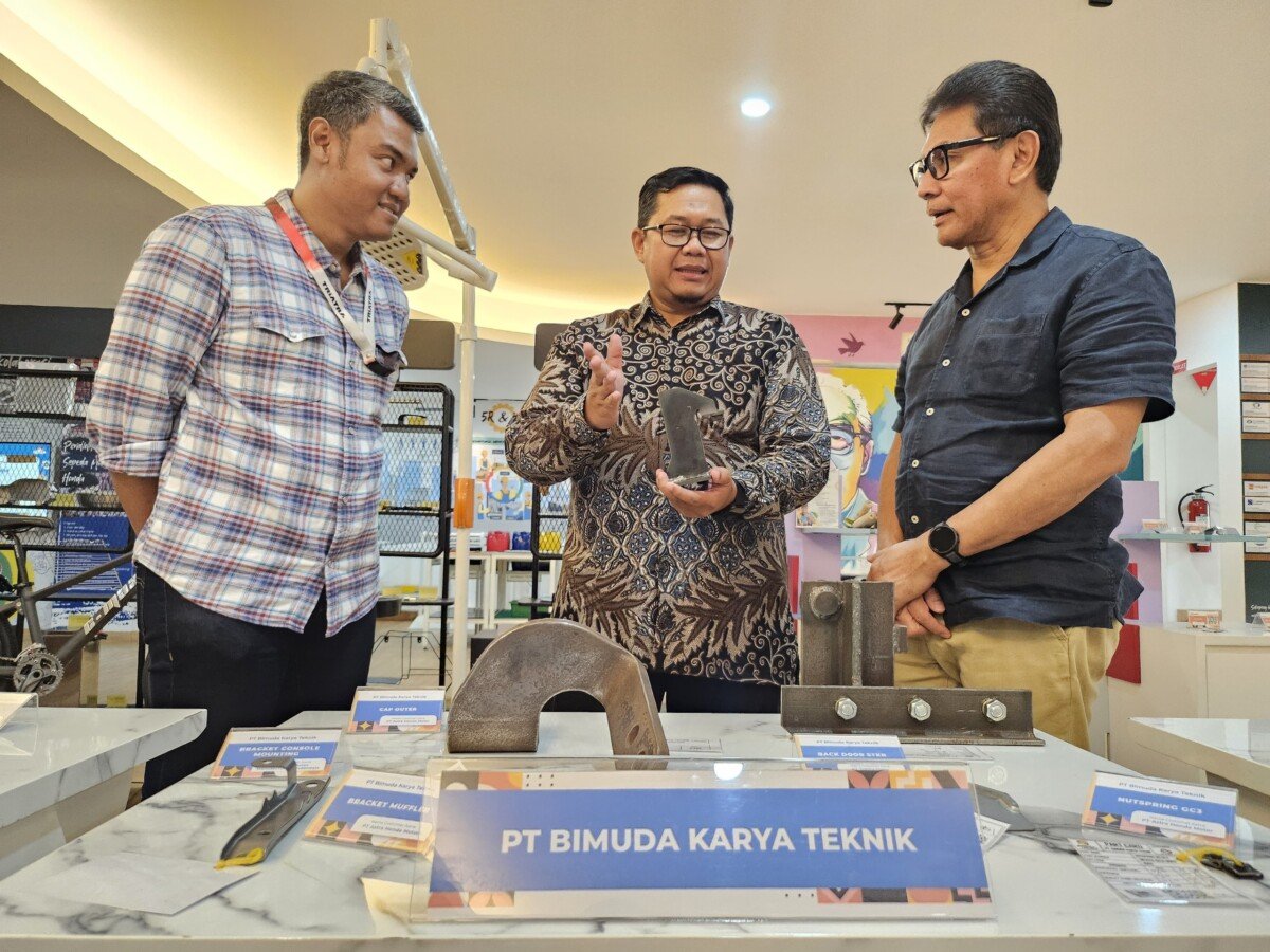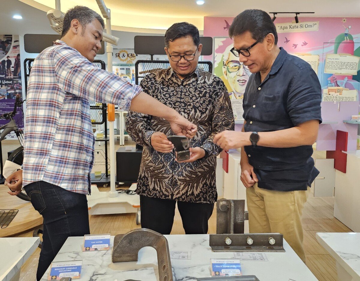 SinarHarapan.id – Direktur PT Bimuda Karya Teknik UMKM binaan Astra melalui Yayasan Dharma Bhakti Astra (YDBA), Tri Sukamto (tengah) saat menunjukkan produk manufaktur yang dibuatnya kepada Ketua Pengurus YDBA, Rahmat Samulo (kanan) dan Business Support Director PT Triatra Sinergia Pratama (Triatra), Chisman Wibowo (kiri) di Jakarta (25/11/2024). Astra melalui YDBA dan Triatra berkolaborasi untuk mengembangkan UMKM melalui program penguatan rantai pasok yang melibatkan 11 UMKM binaan Astra melalui YDBA. UMKM yang terlibat bukan hanya bekesempatan untuk meningkatkan kompetensinya dalam menghasilkan produk sesuai standar QCD (quality, cost, delivery) customer, tetapi juga berkesempatan untuk memasok produknya ke Triatra. Foto: SHID/HO