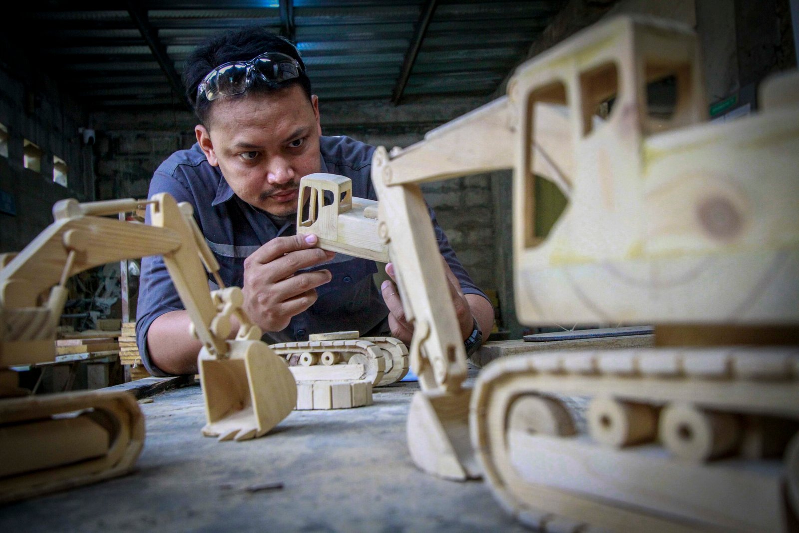 SinarHarapan.id – Pemilik usaha Dewoz Art Bayu Agusworo, pelaku UMKM binaan Astra melalui Yayasan Dharma Bhakti Astra (YDBA) saat menyelesaikan pembuatan miniatur alat berat eskavator di bengkel kerja Dewoz Art, Bogor, Jawa Barat, Jumat (20/9/2024). Dewoz Art UMKM yang bergerak dibidang woodcraft, furniture industrial yang memproduksi kerajinan berbahan kayu.