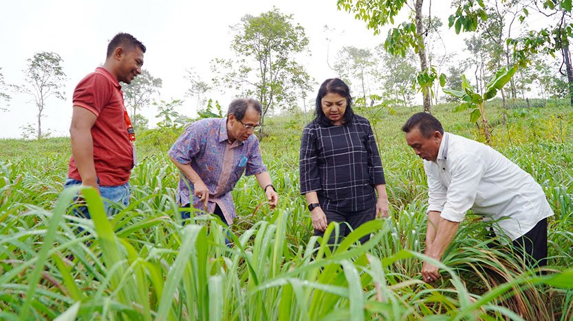 SinarHarapan.id – Petani serai wangi binaan Yayasan Dharma Bhakti Astra (YDBA), Adang Sabroni (kanan) didampingi Koordinator Lembaga Pengembangan Bisnis (LPB) YDBA di Lebak, Dani Kurnia (kiri) menunjukkan langkah memanen serai wangi kepada Ketua Pengurus YDBA, Sigit P. Kumala (kedua kiri) dan Sekretaris Pengurus YDBA, Ida R. M. Sigalingging (kanan) seusai peresmian LPB Lebak, di Banten (15/02/2023). Sejalan dengan cita-cita Astra untuk Sejahtera Bersama Bangsa, Astra melalui Yayasan Dharma Bhakti Astra (YDBA) terus berupaya mengembangkan UMKM Indonesia agar naik kelas dan mandiri.