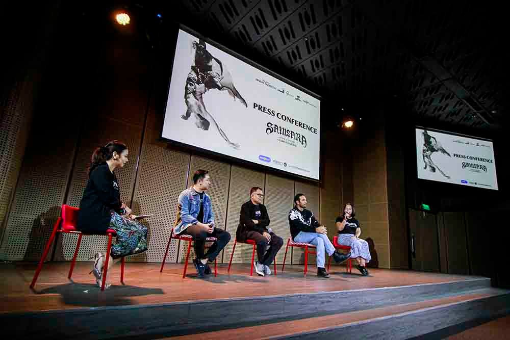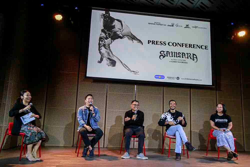 Konferensi pers untuk pertunjukan ini diadakan hari ini di Galeri Indonesia Kaya, yang dihadiri oleh sejumlah tokoh penting di balik produksi Samsara, seperti Renitasari Adrian, Program Director Bakti Budaya Djarum Foundation, Program Manager Bakti Budaya Djarum Foundation Billy Gamaliel Garin Nugroho selaku sutradara, produser Gita Fara, serta pemeran utama Ario Bayu.