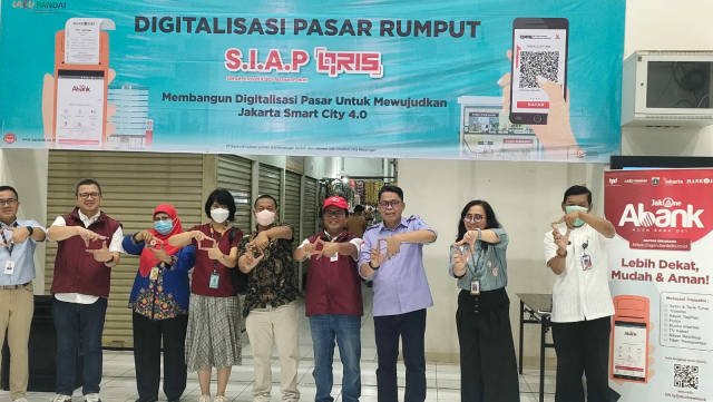 Pada kesempatan tersebut, Bank DKI melalui transformasi layanan digitalnya terus memperluas penerapan digitalisasi di DKI Jakarta dalam rangka mewujudkan kemudahan transaksi non-tunai termasuk kepada sektor UMKM, salah satunya di Pasar Rumput, Jakarta Selatan. Foto SH/dok Bank DKI
