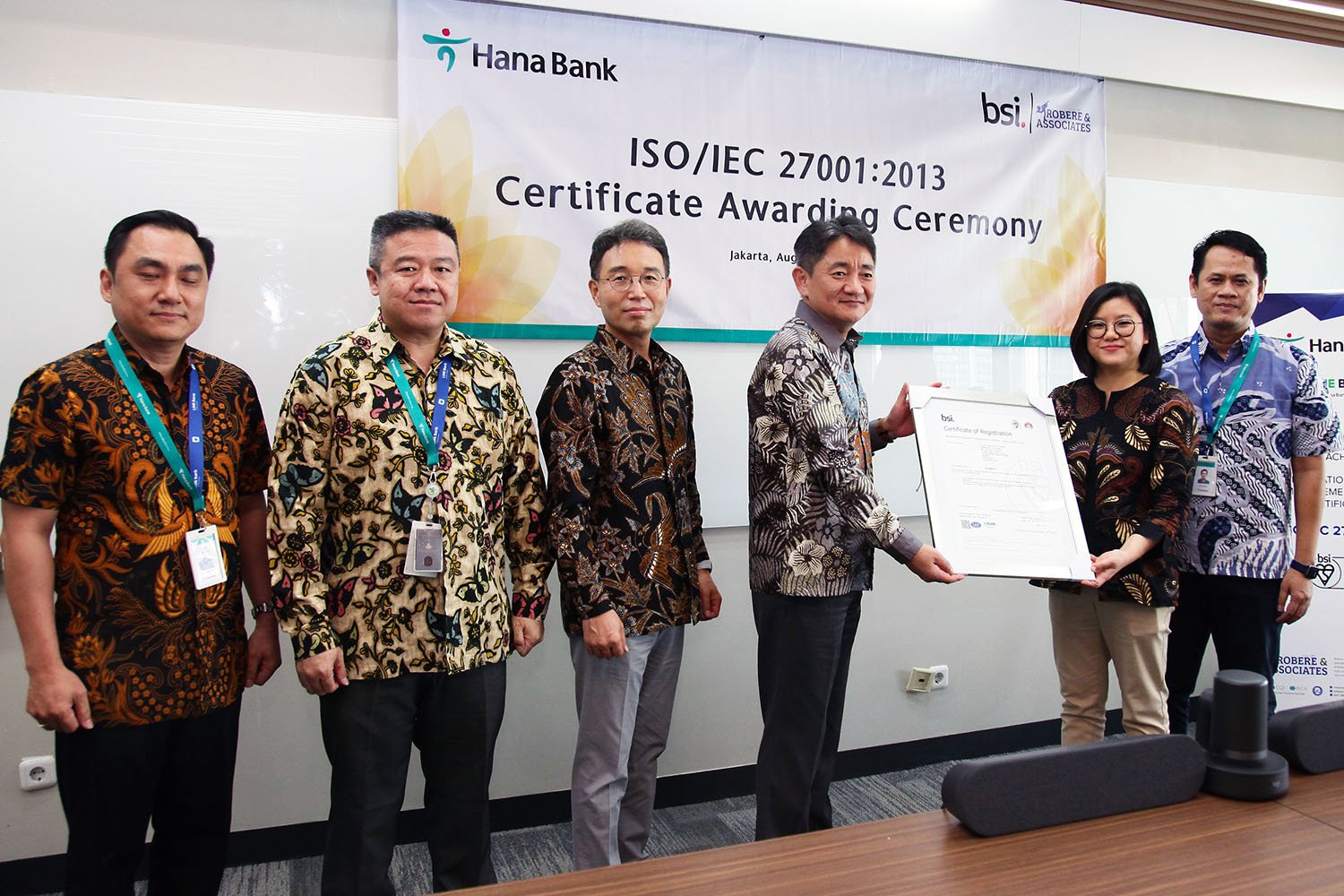 “Bank Hana telah membuktikan kemampuannya mulai dari merencanakan, mengelola, meninjau, dan meningkatkan keamanan sistem informasi perbankan sesuai dengan ruang lingkup ISO 27001. Bank Hana telah memenuhi semua tahapan yang diperlukan dalam proses sertifikasi tersebut hingga akhirnya berhasil mendapatkan sertifikasi ISO/IEC 27001:2013,” lanjut Mr. Park.