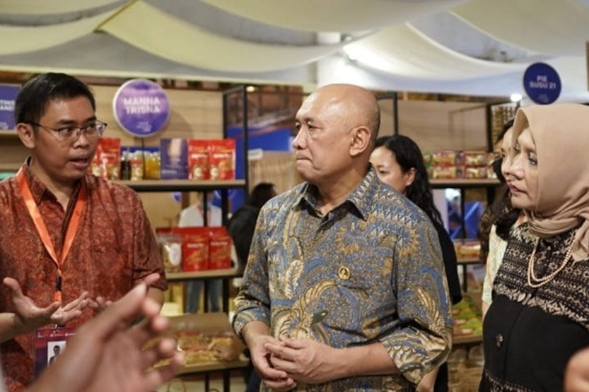 SinarHarapan.id – Menteri Koperasi dan UMKM Teten Masduki (tengah) bersama EVP Transaction Banking Business Development BCA I Ketut Alam Wangsawijaya (kanan) meninjau area BCA di Pasar Nusa Dua, Bali Collection, Kawasan ITDC Nusa Dua, Bali, Jumat (11/11/2022).