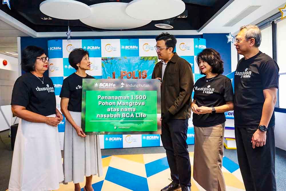 SinarHarpan.id – Presiden Direktur & Chief Executive Officer (CEO) BCA Life Christine Setyabudhi (kedua kiri) bersama Direktur Kepatuhan BCA Life Sukawati Lubis (kiri), Direktur & Chief Distribution Officer (CDO) BCA Life Eva Agrayani (kedua kanan) dan Direktur & Chief Operation Officer (COO) BCA Life Yannes Chandra berbincang dengan VP of Strategy LindungiHutan Adryan Hafizh (tengah) di Jakarta, Senin (14/10/2024). PT Asuransi Jiwa BCA (BCA Life), melanjutkan 10 tahun komitmennya terhadap keberlanjutan lingkungan dan masyarakat dimana tahun ini kembali berkolaborasi dengan Yayasan Lindungi Hutan dalam penanaman 1500 pohon mangrove di Pesisir Pantai Tangkolak, Kabupaten Karawang, Jawa Barat. Aktivitas ini merupakan bagian dari kampanye ‘1 POLIS = 1 POHON’, yang merupakan implementasi salah satu pilar Environment, Social, & Governance (ESG) untuk ekonomi keuangan berkelanjutan Indonesia. Foto: SHID/Ruht Semiono