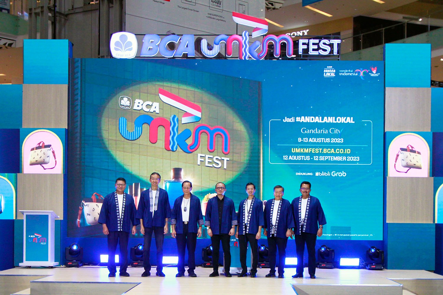 SinarHarapan.id – Staf Ahli Kementerian Koperasi dan UMKM Fiki Satari (empat kanan) dan Presiden Direktur BCA Jahja Setiaatmadja (tiga kiri) serta jajaran direksi BCA membuka acara BCA UMKM Fest 2023 di Jakarta, Rabu (9/8/2023). Bank Central Asia Tbk (BCA) kembali menggelar BCA UMKM Fest 2023 dengan tajuk “Jadi #ANDALANLOKAL” yang digelar di Gandaria City, Jakarta pada 9-13 Agustus 2023, di mana pembukaannya dilakukan oleh Presiden Direktur BCA Jahja Setiaatmadja bersama Staf Khusus Kementerian Koperasi dan UMKM Fiki Satari serta jajaran BOD BCA. BCA berkomitmen mendukung UMKM Indonesia untuk tumbuh dan berkembang. Melalui BCA UMKM Fest 2023, BCA menyediakan ruang berkarya bagi pegiat UMKM, membantu segala kebutuhan pelaku UMKM dari aspek transaksi penjualan, operasional perusahaan, ataupun pembiayaan UMKM melalui Kredit Multiguna Usaha (KMU) edisi UMKM Fest dengan suku bunga efektif mulai dari 3,12% p.a. berlaku hingga 1 Oktober 2023. Foto: SHID/Ruht Semiono