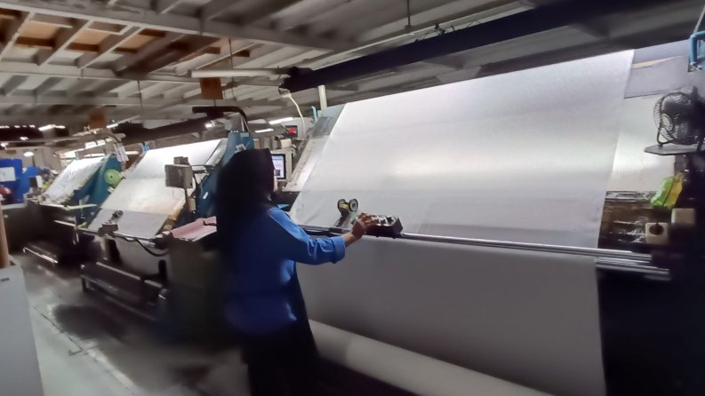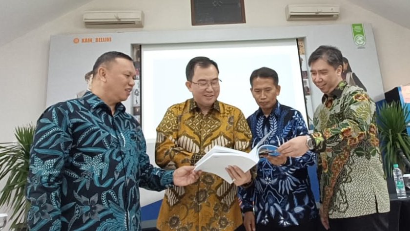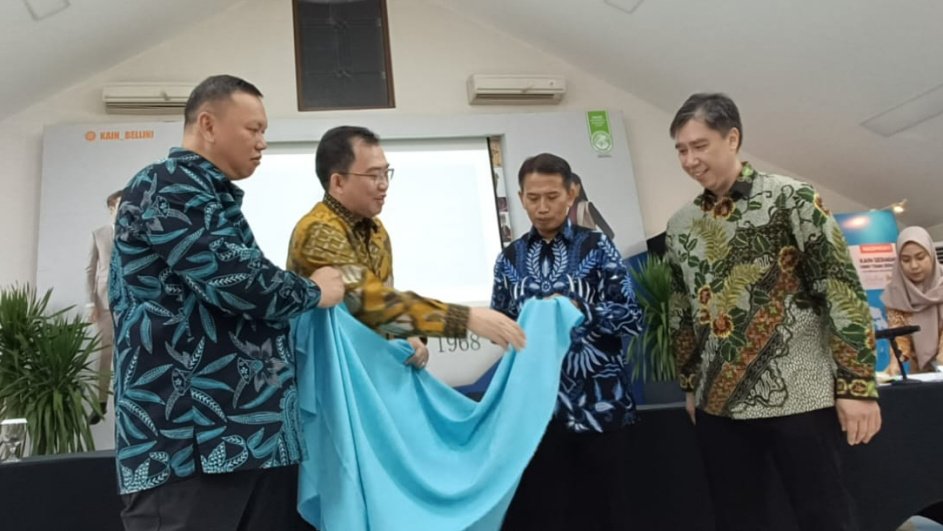 SinarHarapan.id – (Kiri-kanan) Direktur Lukas Ginting, Direktur Utama Karsongno Wongso Djaja, Direktur Wagiyono, Direktur Heru Jatmiko Harrianto berbincang seusai mengikuti Rapat Umum Pemegang Saham Tahunan (RUPST) PT Trisula Textile Industries Tbk (BELL) di Cimahi, Jawa Barat, Senin (22/4/2024).