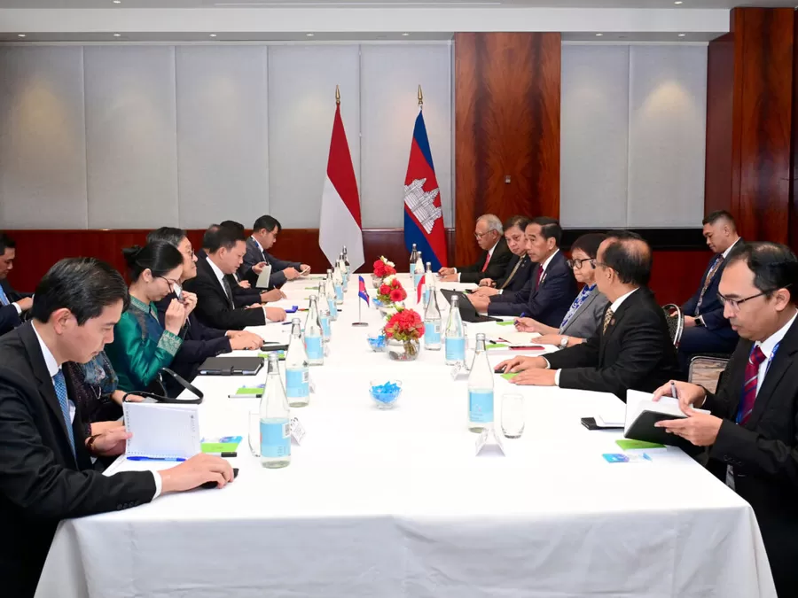 SinarHrapan.id – Presiden Joko Widodo bertemu dengan Perdana Menteri Kamboja Hun Manet di Hotel Park Hyatt, Melbourne, Australia, Selasa (5/3/2024). Kedua pemimpin membahas penguatan hubungan bilateral antara Indonesia dan Kamboja, menyambut perayaan 65 tahun hubungan diplomatik kedua negara pada tahun ini.