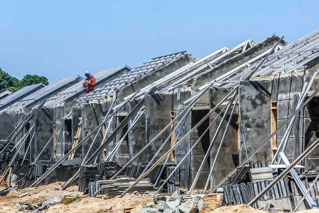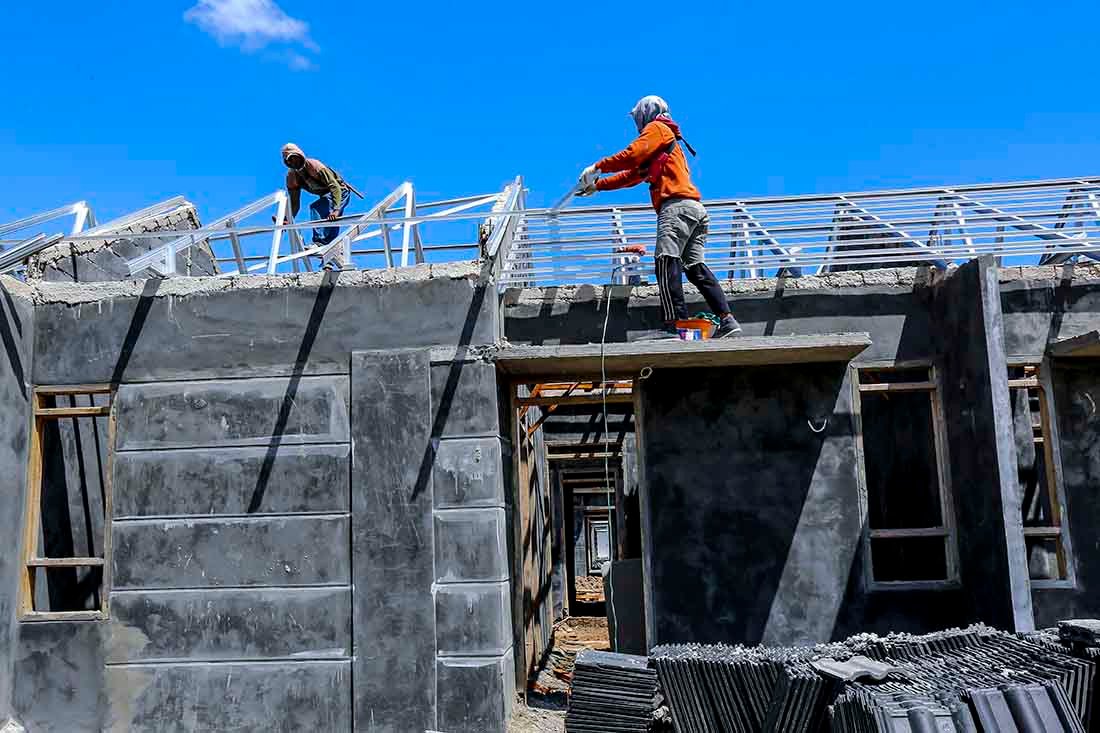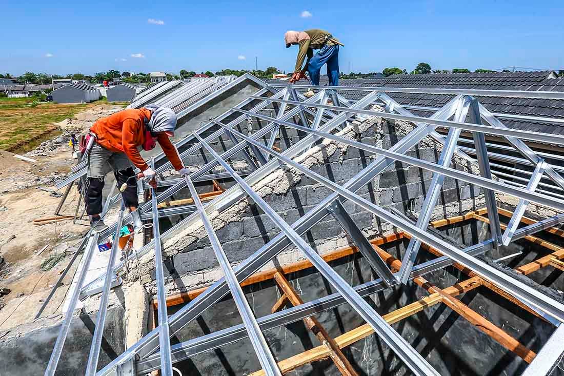 SinarHarapan.id – Pekerja bangunan sedang menyelesaikan pembangunan rumah subsidi di sebuah perumahan di  Tenjo, Kabupaten Bogor, Jawa Barat (9/2/2025). Berkat dukungan pembiayaan dari BTN banyak keluarga Indonesia dapat memiliki rumah yang layak untuk membangun keluarga bahagia.