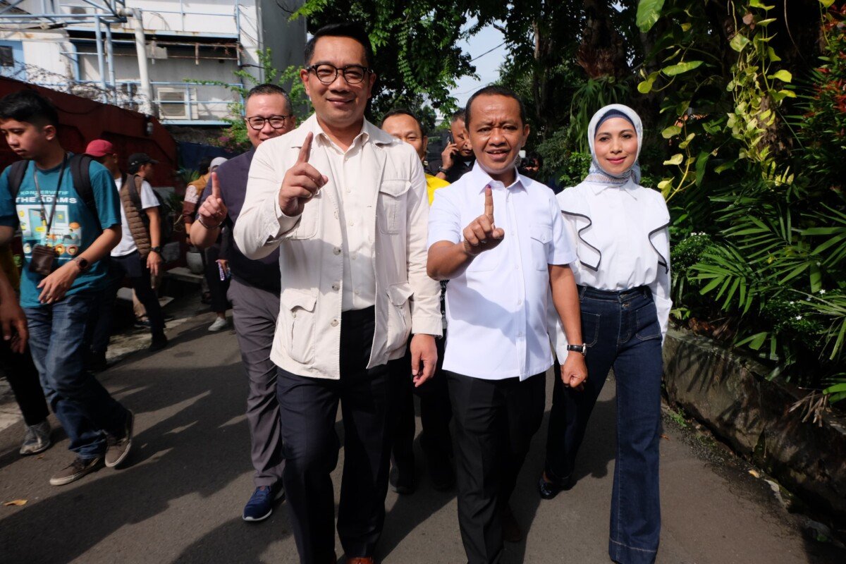 SinarHarapan.id – Calon Gubernur nomor urut satu Ridwan Kamil menemani Ketua Umum (Ketum) Golkar Bahlil Lahadalia untuk mencoblos dalam Pilkada 2024 di Kawasan Duren Tiga, Jakarta, Rabu (27/11/2024).