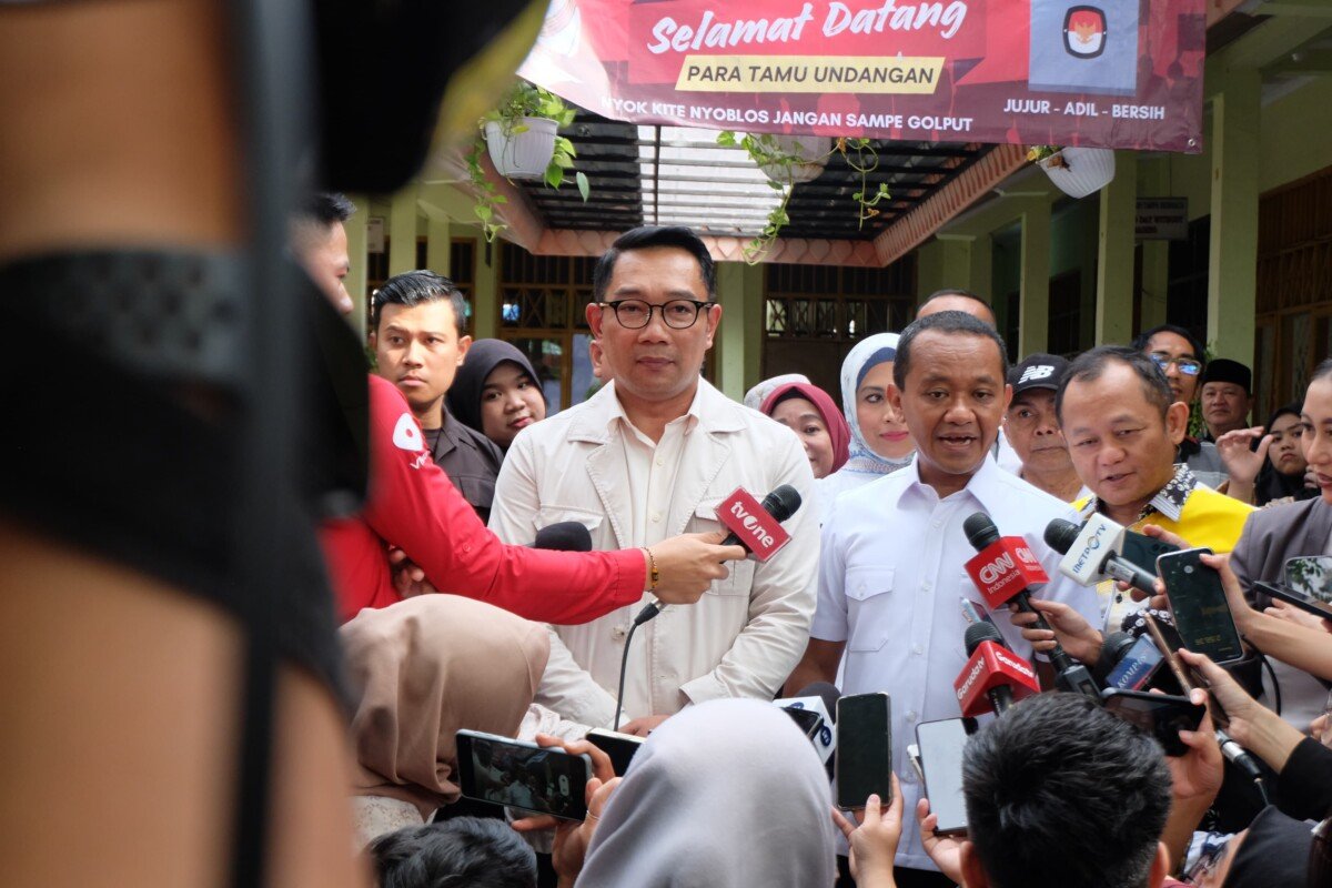 Setelah Bahlil selesai mencoblos, Ridwan Kamil pun mengungkapkan rasa optimisnya dalam Pilkada 2024 ini. Foto: SHID/Ruht Semiono