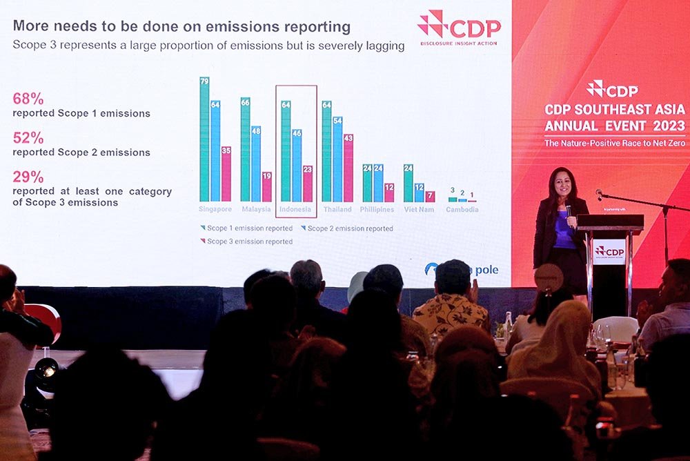 Pada tahun 2022, 482 perusahaan di seluruh Asia Tenggara melaporkan data iklim ke CDP, tetapi hanya 123 perusahaan yang melaporkan tentang air dan 35 perusahaan yang melaporkan tentang hutan. CDP juga melaporkan bahwa hanya 20 (atau 4%) perusahaan di Asia Tenggara yang mengungkapan tiga tema yaitu perubahan iklim, hutan, dan ketahanan air. Foto: SHID/Ruht Semiono