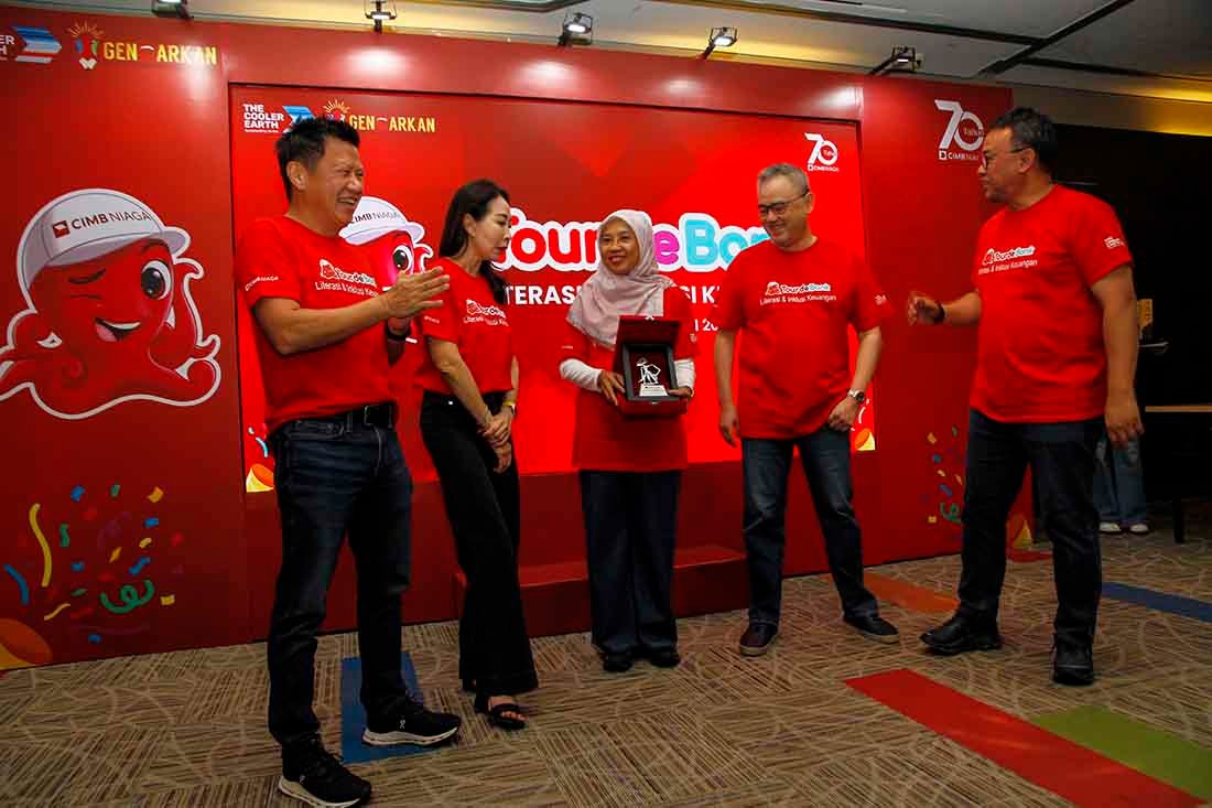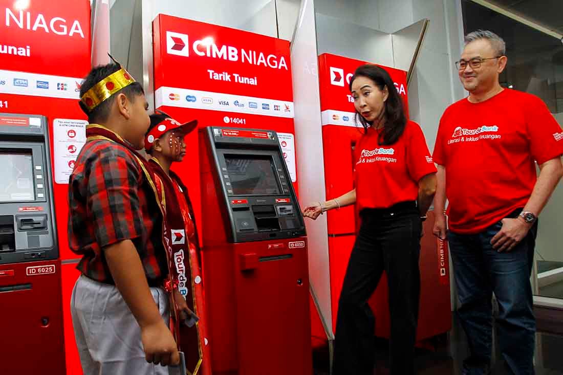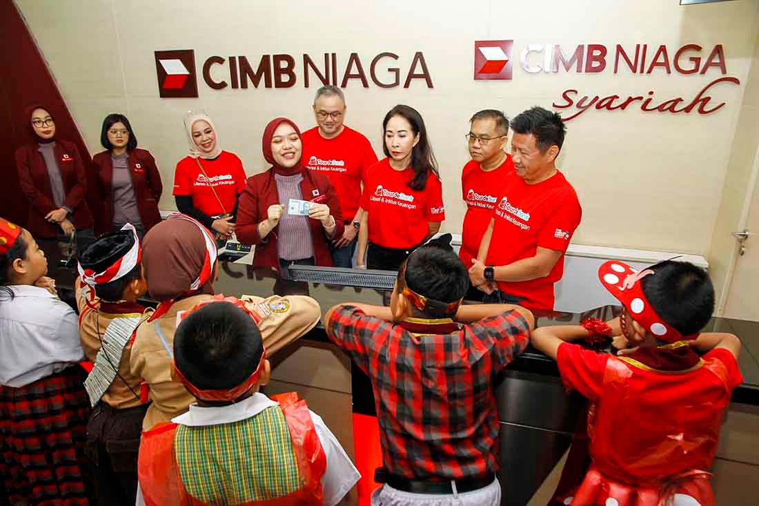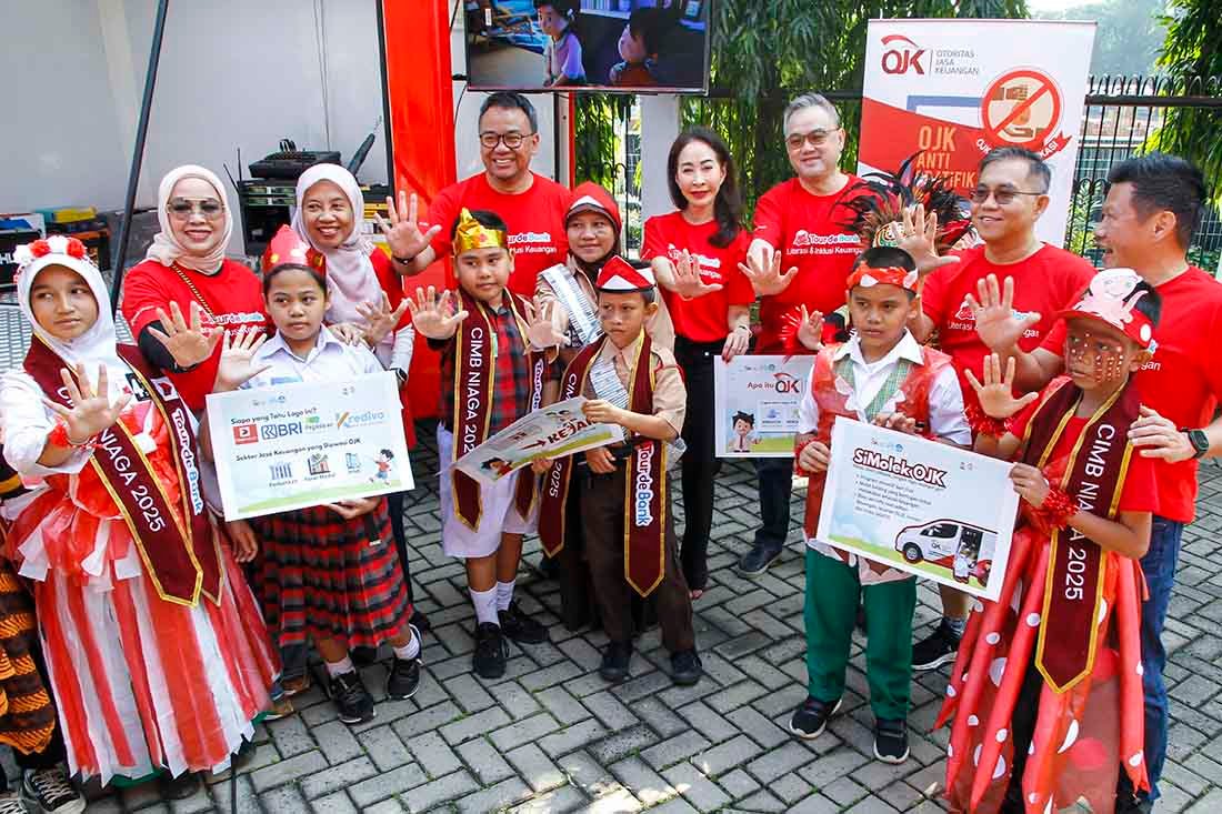 SinarHarapan.id – Direktur Compliance, Corporate Affairs and Legal CIMB Niaga Fransiska Oei (ketiga kanan) bersama Direktur Strategy, Finance, SPAPM CIMB Niaga Lee Kai Kwong (tengah), Direktur Operations & IT CIMB Niaga Rico Usthavia Frans (kedua kanan), Chief of Network & Digital Banking CIMB Niaga Budiman Tanjung (kanan), dan Head of Region Jakarta A dan Kalimantan CIMB Niaga Evita Barliana (ketiga kiri) di sela kegiatan literasi keuangan Tour de Bank (TDB) di CIMB Niaga Icon Pondok Indah, Jakarta, Sabtu (19/7/2025). Kegiatan yang diikuti 300 siswa dari 6 SD di Jakarta ini merupakan wujud dukungan nyata untuk program Gerakan Nasional Cerdas Keuangan OJK dan implementasi satu pilar CSR CIMB Niaga di bidang pendidikan.Foto: SHID/Ruht Semiono