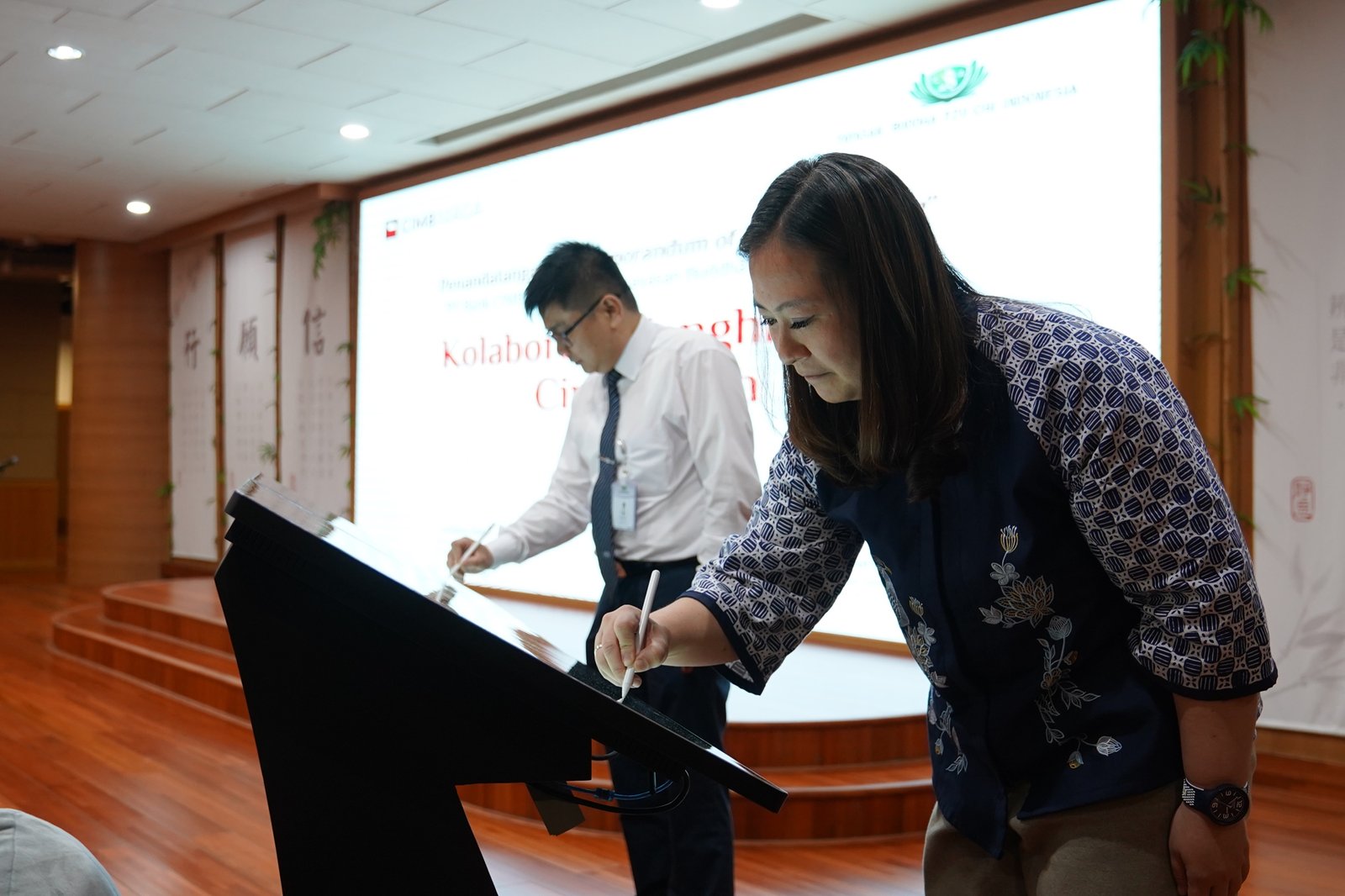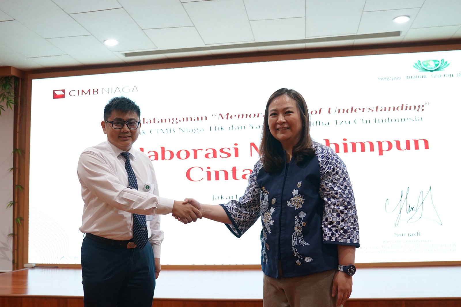 SinarHarapan.id – Head of Digital Banking, Branchless & Partnership CIMB Niaga Lusiana Saleh (kanan) memberikan cendera mata kepada Kepala Sekretariat Yayasan Buddha Tzu Chi Indonesia sekaligus General Director of Tzu Chi Hospital Suriadi di sela-sela penandatanganan Memorandum of Understanding (MoU) penerimaan pembayaran donasi melalui OCTO Mobile dan OCTO Clicks di Jakarta, Kamis (18/4/2024). Sebagai bank dengan layanan digital banking yang lengkap, CIMB Niaga terus memperluas kerja sama dengan berbagai komunitas secara terbuka (inklusif) termasuk Yayasan Buddha Tzu Chi Indonesia untuk memfasilitasi kebutuhan nasabah dalam berbagi kasih pada program-program sosial kemanusiaan. Foto: SHID/Istimewa