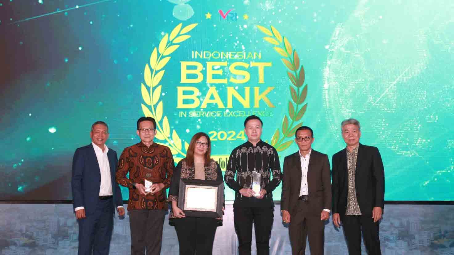 SinarHarapan.id – Yusno Kadino, Branch & People Management Head, PT Bank Danamon Indonesia Tbk (kedua dari kiri), Natasha Damayanti, Channel Experience Management Head, PT Bank Danamon Indonesia Tbk (ketiga dari kiri), dan Sugito Wijaya, Sales Strategy Head, PT Bank Danamon Indonesia Tbk (ketiga dari kanan) menerima penghargaan untuk kategori Bank Konvensional dari Eko Budi Supriyanto, Direktur Utama, Infobank Media Group (pertama dari kiri), Karnoto Mohamad, Direktur, Infobank Media Group (kedua dari kanan), dan Hary Puspito, Direktur Utama, Marketing Research Indonesia (pertama dari kanan) pada ajang 21st Infobank Banking Service Excellence 2024.