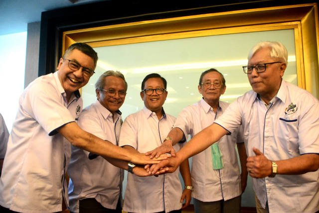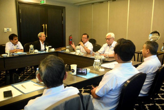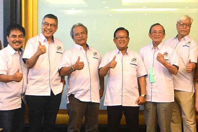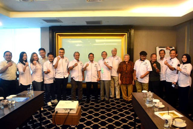 SinarHarapan.id – Dewan Pengawas Masyarakat Energi Baru Nuklir Indonesia (MEBNI), Bob S Effendi (kiri), Dewan Pakar MEBNI, Agus Puji Prasetyono (dua kiri), Dewan Pembina MEBNI, Sugeng Suparwoto (tengah), Dewan Pengawas MEBNI, Endro U. Notodisuryo (dua kanan) dan Ketua MEBNI, Arnold Soetrisnanto (kanan) lakukan salam kompak usai deklarasi  organisasi MWBNI di Jakarta, Sabtu (11/3/2023). MEBNI yang berasal dari berbagai