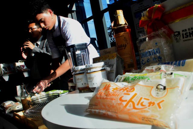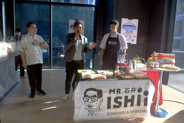SinarHarapan.id – Aaron Laksana, chef untuk Mr.Ishii Konnyaku & Shirataki (kanan), Charlie Shirataki, perwakilan Mr.Ishii Konnyaku & Shirataki (tengah) dan Kevindra Soemantri, Co-Founder Jakarta Dessert Week menunjukan olahan makanan hasil akhir live demo membuat Shirataki Fruit Honey Salad dan Creamy Ice Durian Shirataki di Dessert Markt Upper Marketplace ASTHA District 8, Jakarta, Minggu (5/3/2023). Di tengah bazaar DESSERT MARKT: A Pop-Up Concept by Jakarta Dessert Week, pelopor festival dessert di Indonesia, Jakarta Dessert Week (JDW) satu-satunya festival kuliner berpredikat KEN (Kharisma Event Nusantara) dari Kemenparekraf RI, terus melakukan inovasi mengajak masyarakat menikmati aneka hidangan manis karya berbagai merek UKM/UMKM yang terkurasi.