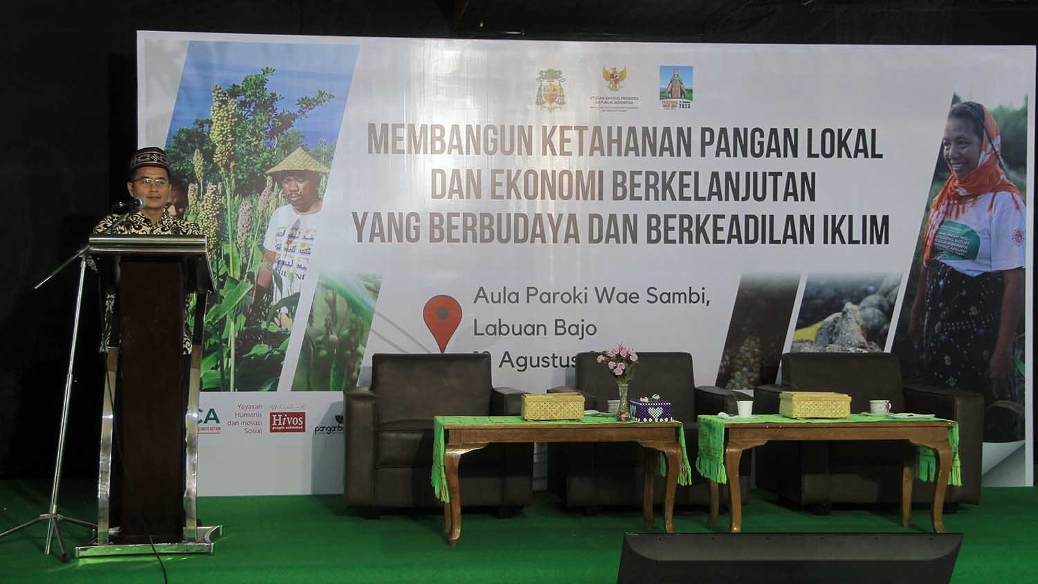 Rangkaian kegiatan dimulai dengan melakukan kegiatan penanaman bibit mangrove dan bersih-bersih pantai pada 11 Agustus 2023. Keesokan hari, acara dilanjutkan dengan kegiatan seminar dan talkshow berlokasi di Aula Paroki Waesambi. Turut hadir sebagai keynote speaker, yaitu Utusan Khusus Kepresidenan (UKP) Bidang Kerjasama Pengentasan Kemiskinan dan Ketahanan Pangan Muhamad Mardiono, Direktur The Climate Reality Project Indonesia Amanda Katili Niode PhD dengan topik bahasan Mengarusutamakan Isu Perubahan Iklim Global Ke Konteks Lokal, dan Romo Inno Sutam yang membahas topik Penerapan Laudato Si dalam Mendorong Aksi Iklim, Pangan, dan Ekonomi Berkelanjutan. Foto: SHID/Istimewa