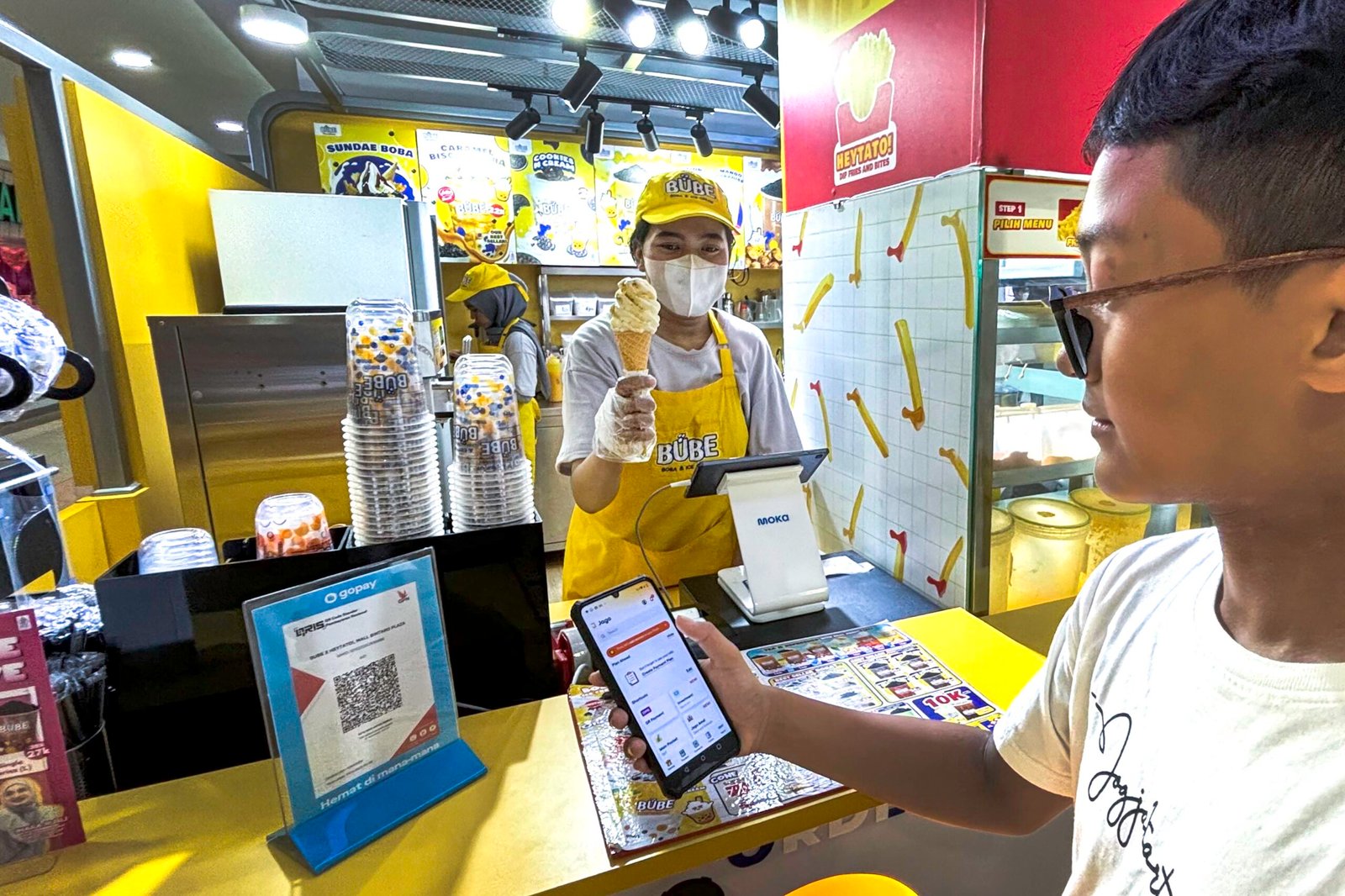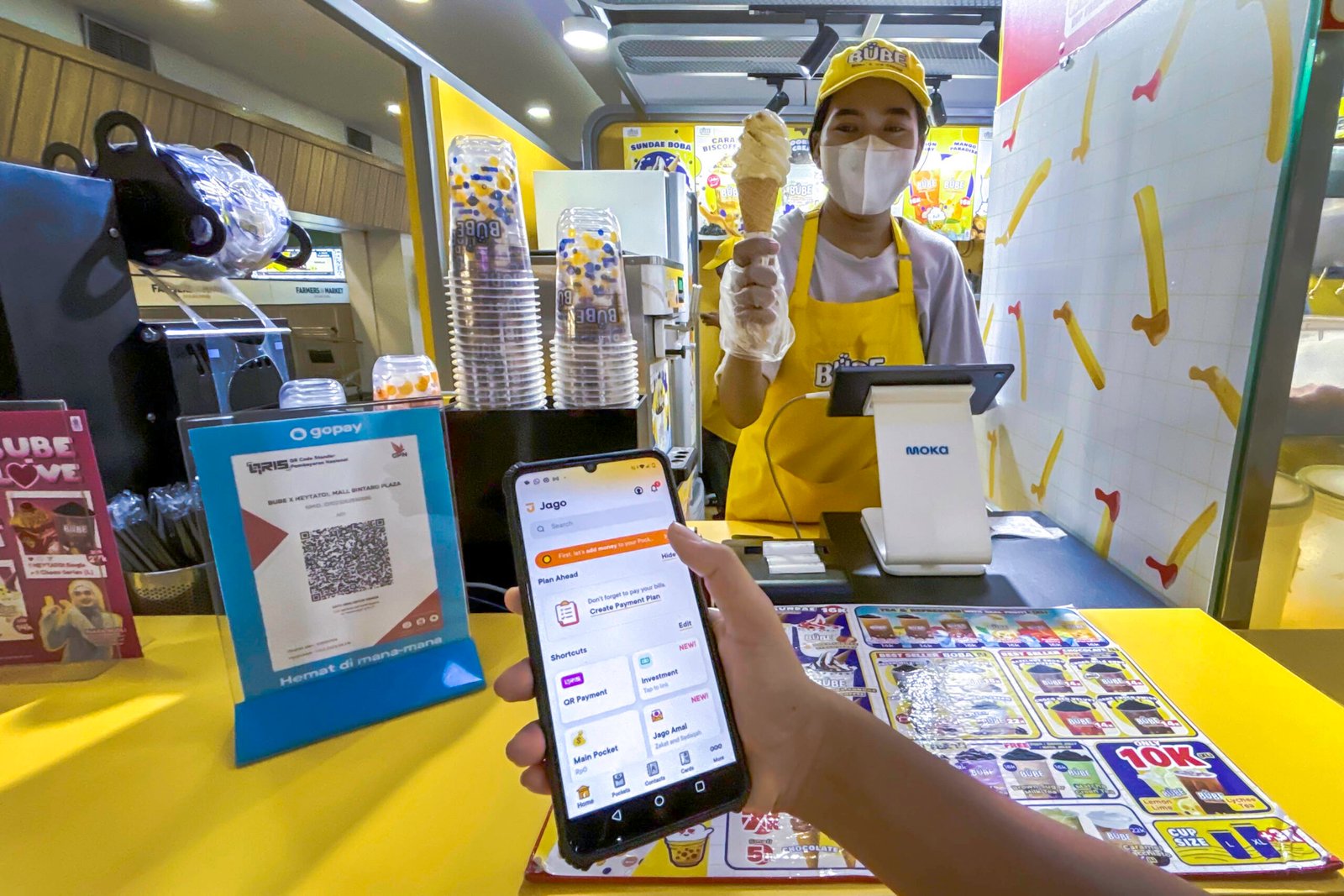 SinarHrapan.id – Pembeli melakukan pembayaran melalui aplikasi Gopay Tabungan by Jago saat membeli prangko seri Imlek 2024 Tahun Naga Kayu 2575 di Tangerang Selatan, Minggu (11/2/2024). Sejak diluncurkan pada Oktober 2023 hingga Januari 2024, GoPay Tabungan by Bank Jago telah diakses oleh lebih dari 700.000 pengguna dengan nilai transaksi yang tumbuh hingga 5 kali lipat. Foto: SHID/Ruht Semiono
