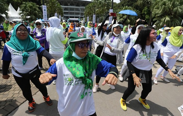 Foto 2 – 5 : Warga mengikuti pemeriksaan tulang puncak Hari Osteoporosis Nasional (HON) 2022 di Gelora Bung Karno (GBK), Senayan, Jakarta, Minggu (23/10/2022).