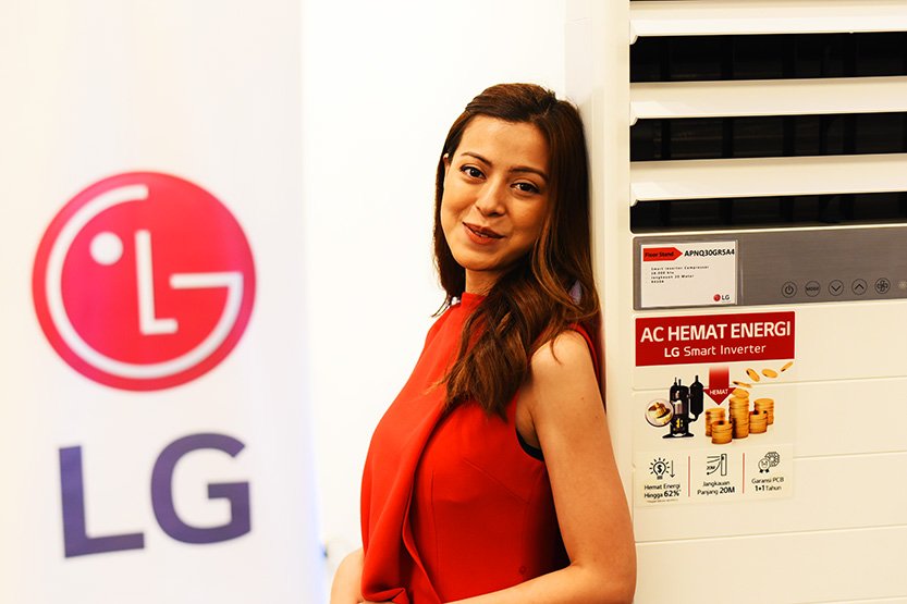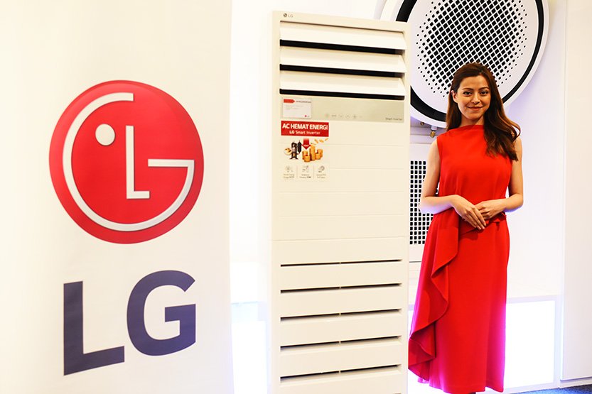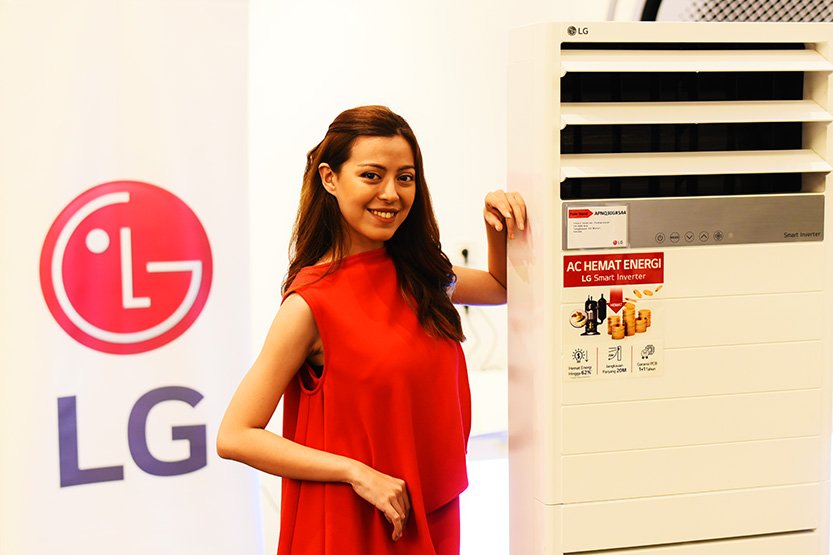 Model berpose memperlihatkan unit AC floor Standing LG. PT LG Electronics Indonesia memperkenalkan rangkaian AC floor standing, yang merupakan sebuah alternatif untuk menangani penyejukan ruang lebih besar.