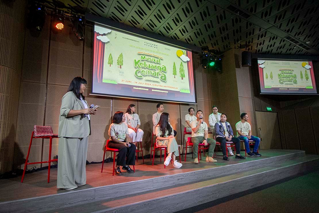 SinarHarapan.id – Pemeran pertunjukkan panggung musikal Keluarga Cemara tampil saat konferensi pers di Jakarta, Selasa (30/4/2024). Visinema Studios dan www.indonesiakaya.com bekerjasama dengan Teater Musikal Nusantara (TEMAN) itu menghadirkan adaptasi cerita kesayangan keluarga Indonesia dengan kehangatan keluarga Abah, Emak, Euis, dan Ara di atas panggung yang spektakuler yang berlangsung pada 21 Juni hingga 14 Juli 2024 mendatang di Ciputra Artpreneur Jakarta.