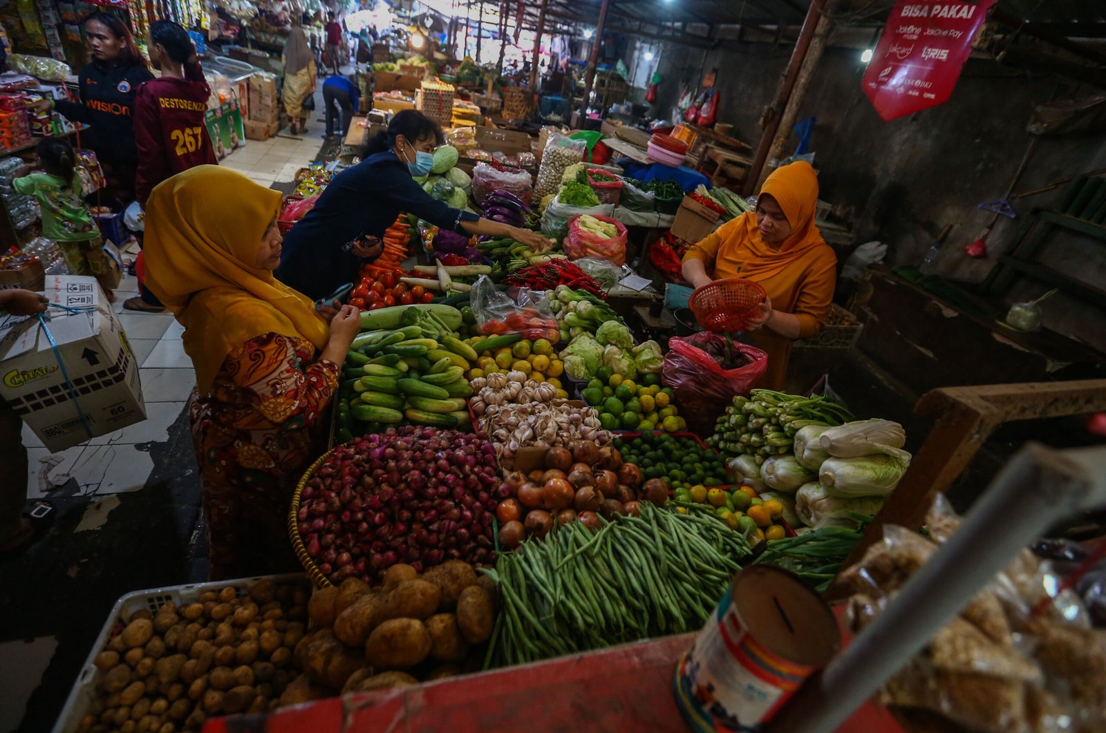 SinarHarapan.id – Warga Membeli kebutuhan sehari-hari di pasar di Jakarta, Sabtu (9/3/2024). Berdasarkan data Pusat Informasi Harga Pangan Strategis Nasional (PHPS) Sejumlah harga pangan masih mengalami kenaikan menjelang bulan suci ramadhan tahun ini. Seperti Beras, Cabai, dan daging ayam ras. Foto: SHID/Ruht Semiono