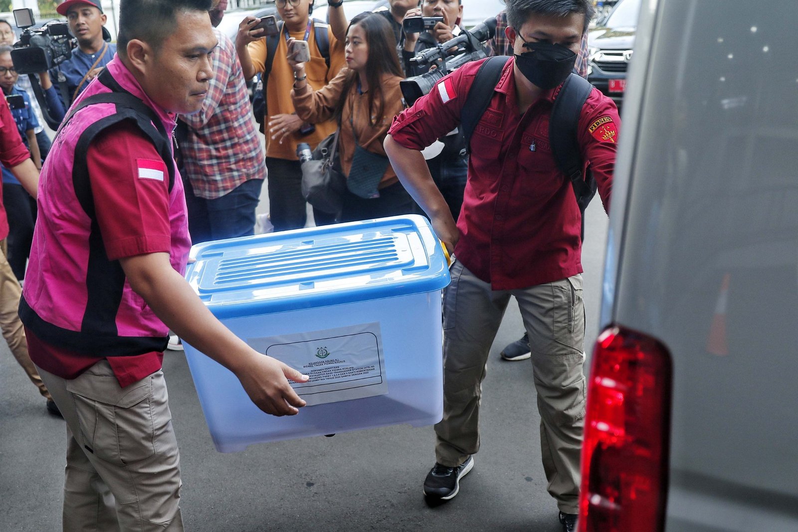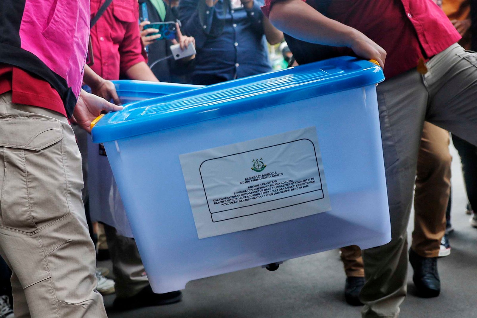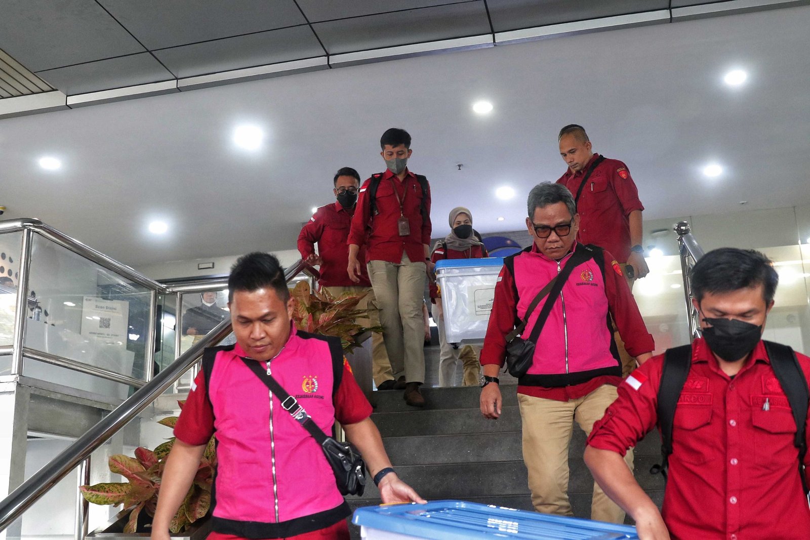 SinarHarapan.id – Tim penyidik Kejaksaan Agung (Kejagung) RI membawa dua kontener dokumen usai melakukan penggeledahan terhadap sejumlah ruangan di Kantor Kementerian Komunikasi dan Informatika (Kemenkominfo), Jakarta, Rabu (17/5/2023). Pengeledahan tersebut dilakukan usai ditetapkannya Johnny G Plate sebagai tersangka terkait kasus dugaan korupsi penyediaan infrastruktur Base Transceiver Station (BTS) 4G. Foto: SHID/Ruht Semiono