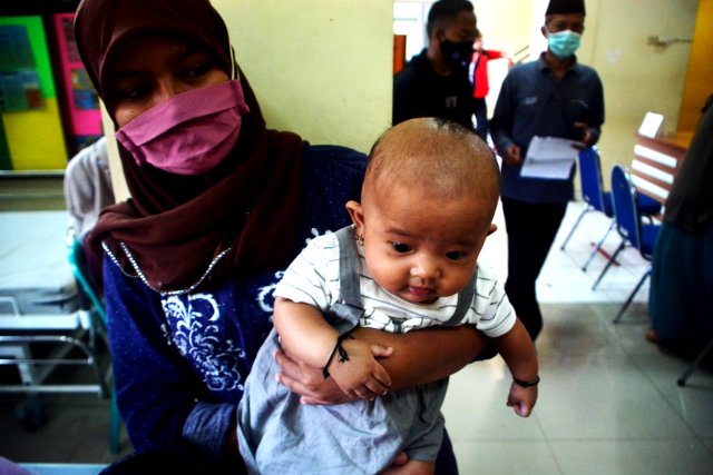SinarHarapan.id – Warga membawa anaknya untuk diberikan imunisasi polio di Puskesmas Pasir Putih, Depok, Rabu (31/5/2023). Kementerian Kesehatan (Kemenkes) mengumumkan vaksinasi inactivated polio vaccine (IPV) pada bayi menjadi dua kali mulai 2023. Foto SHID/Elvis Sendouw
