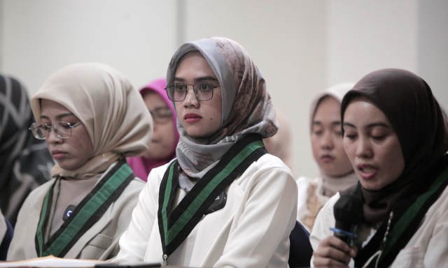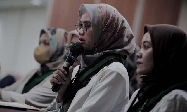 SinarHarapan.id – Bendahara Umum Kohati Riska (kiri), Ketua Umum Kohati Umiroh Fauziah (tengah), Sekretaris Umum Kohati Imayati Kalean (kanan) saat menggelar jumpa persnya di Jakarta, Jumat (2/9/2022). Dalam jumpa persnya Kohati PB HMI mengecam tindakan represif aparat Kepolisian terhadap para kader Kohati dan HMI di depan Polres Dompu dalam aksi tolak kenaikan harga bbm. Foto SH/dok HMI