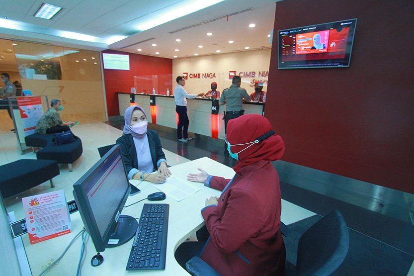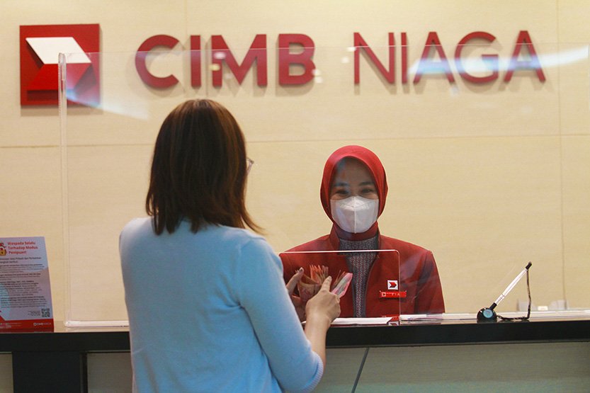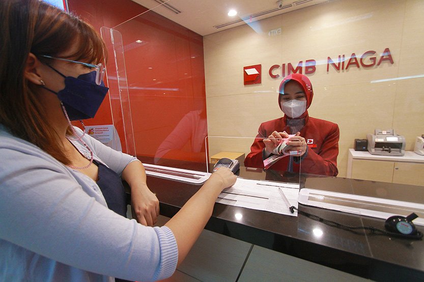 SinarHarapan.id – Nasabah melakukan transaksi di Kantor Cabang CIMB Niaga di Jakarta, Kamis (23/2/2023). CIMB Niaga mencatatkan perolehan laba sebelum pajak konsolidasi (audited) sebesar Rp6,6 triliun pada tahun 2022. Angka ini naik sebesar 26,7% yoy. Jumlah kredit/pembiayaan juga meningkat 9,4% yoy menjadi Rp199 triliun (termasuk pembiayaan Salam). Peningkatan kinerja didukung inovasi produk dan layanan perbankan yang komprehensif untuk memberikan pengalaman serta kenyamanan transaksi terbaik bagi nasabah. Foto: SHID/Ruht Semiono