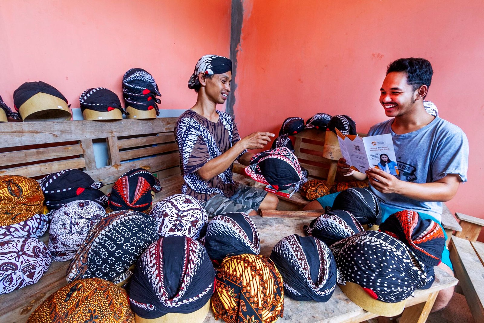 SinarHarapan.id – Pengrajin blankon mencari informasi tentang penjaminan simpanan nasabah yang berbentuk tabungan, deposito, giro, sertifikat deposito, dan bentuk lainnya hingga sebesar dua miliar rupia di Bantul, Yogyakarta, Jumat (25/8/2023). LPS sebagai bagian dari KSSK turut serta bersinergi dengan lembaga anggota KSSK lain untuk menjaga stabilitas sistem keuangan (SSK) dan mendorong pemulihan ekonomi nasional melalui tugas dan kewenangan yang dimiliki oleh LPS.