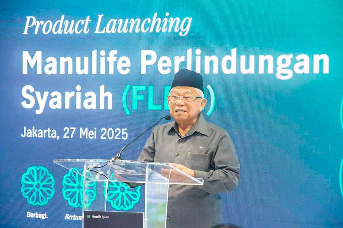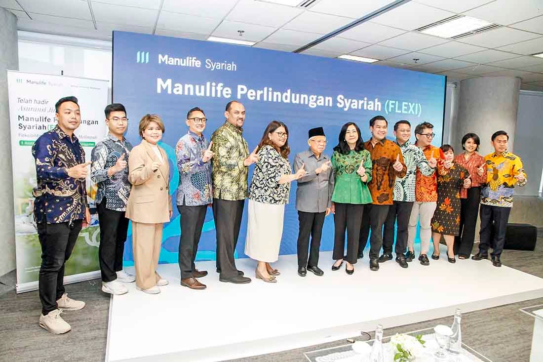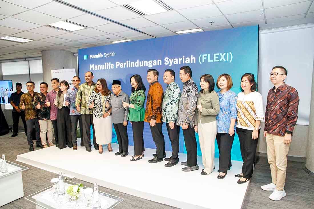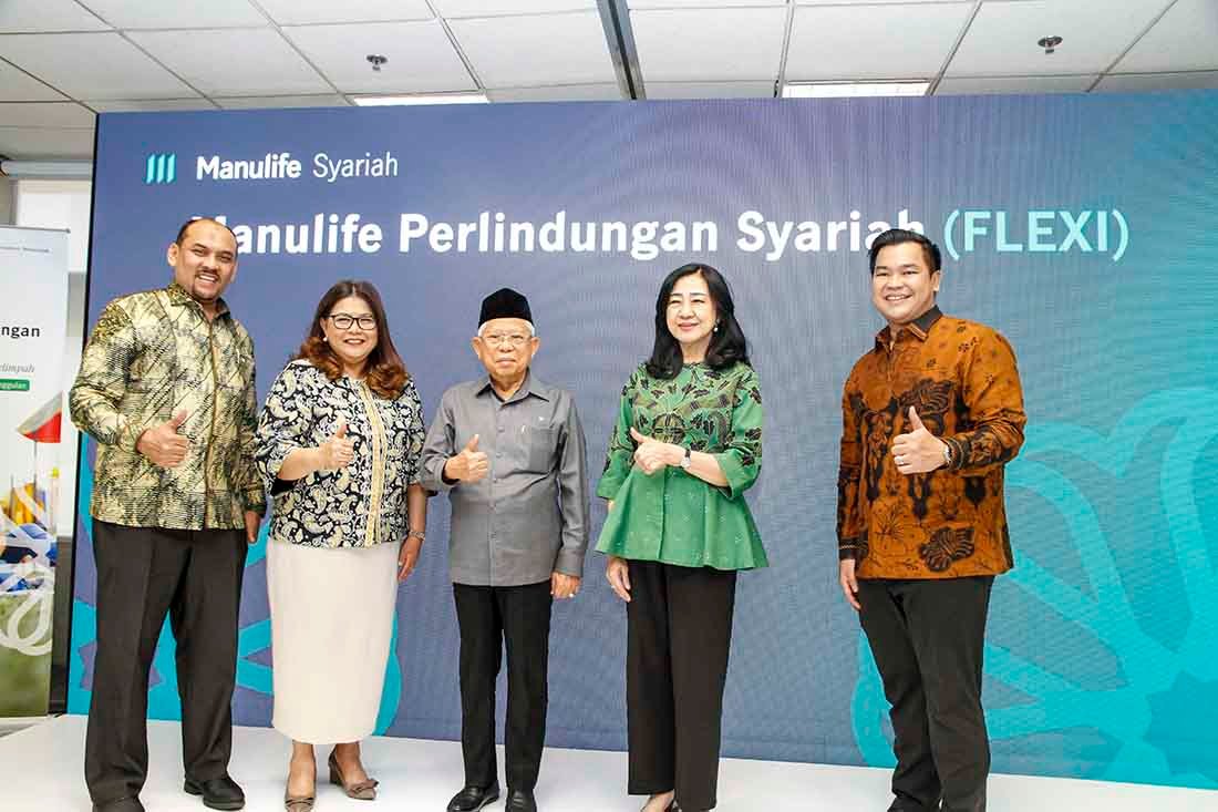 SinarHarapan.id – Presiden Direktur Manulife Syariah Indonesia Fauzi Arfan (kiri) bersama Wakil Presiden Direktur & Deputy CEO Manulife Indonesia Novita Rumngangun (keeua kiri), Ketua Dewan Syariah Manulife Syariah Indonesia Prof. Dr. (HC) KH Ma’ruf Amin (tengah), Presiden Direktur Manulife Indonesia Lauren Sulistiawati (kedua kanan) dan GM Agency Manulife Indonesia William Satriadi Soetrisno (kanan) berfoto bersama usai peluncuran Manulife Perlindungan Syariah (FLEXI), Jakarta, Selasa (27/5). Foto: SHID/Ruht Semiono.