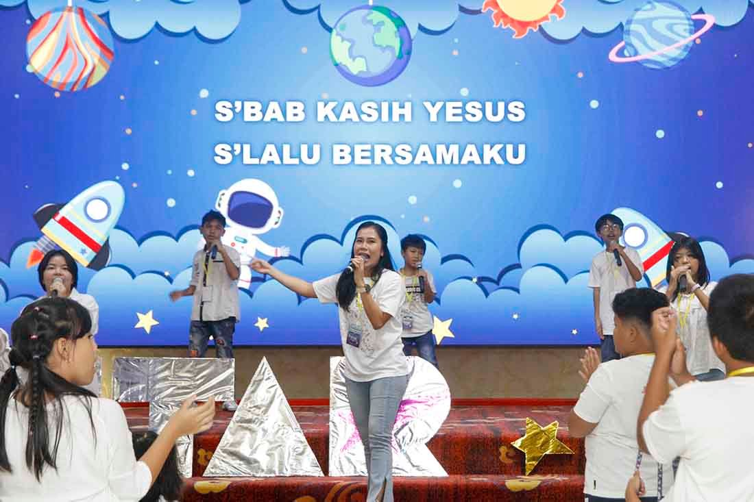 Tema ini mengajak anak-anak untuk menjadi pribadi yang berani melangkah, pantang menyerah, memiliki cita-cita yang tinggi, dan senantiasa menggantungkan harapan mereka kepada Tuhan. Foto: SHID/Dok GPdI Sejahtera