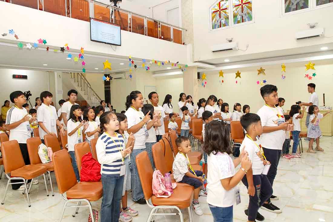 SinarHarapan.id – Sejumlah anak-anak mengisi liburan sengan Sekolah Injil Liburan (SIL) di GPdi Sejahtera, di Tangerang Selatan, Banten, Kamis (04/7/2025). SIL GPdI Sejaktera mengkat tema “STAR: Stay Brave, Try Hard, Aim High, Reach Your Dreams”.