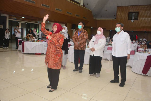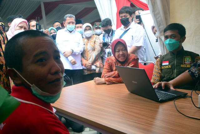 SinarHarapan.id – Menteri Sosial Tri Rismaharini (kiri) berbincang dengan pasien ODGJ (Orang Dengan Gangguan Jiwa) yang akan mengikuti perekaman data untuk E-KTP saat acara Hari Kesehatan Jiwa Sedunia (HKJS) di Sentra Terpadu Pangudi Luhur (STPL) Bekasi, Jawa Barat, Kamis (6/10/2022). Pada kegiatan tersebut Mensos memberikan bantuan kepada penerima manfaat dan mengkampanyekan isu penanganan kesehatan jiwa untuk meningkatkan pemahaman serta kesadaran masyarakat saat memperingati HKJS. Foto SH/Elvis Sendouw