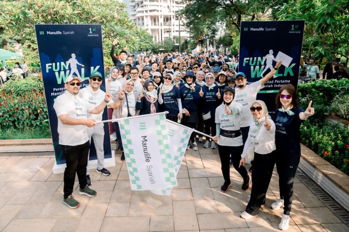 Sebagai bagian dari inisiatif tersebut, karyawan dan tenaga pemasar PT Asuransi Jiwa Manulife Indonesia (AJMI) serta PT Asuransi Jiwa Manulife Indonesia Syariah (AJMIS) turut berpartisipasi dalam kegiatan Fun Walk yang menjadi rangkaian Milad Pertama pada 30 November 2025. Setiap peserta Fun Walk yang mencapai 5.000 langkah berkontribusi terhadap donasi internal yang akan disalurkan melalui Yayasan Manulife Peduli untuk mendukung program Wakaf Air. Foto: SHID/Istimewa