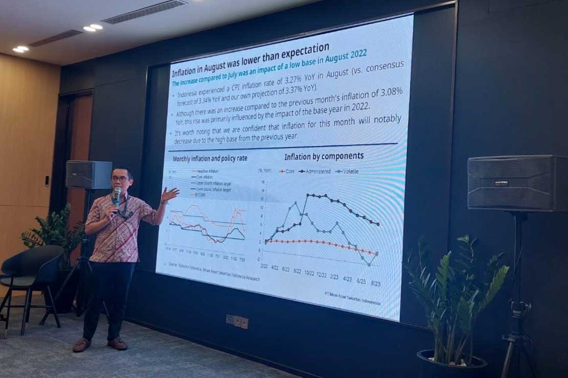 SinarHarapan.id – (dari kiri ke kanan) Ivonne Kaharu, Head of Corporate Secretary; Rully Arya Wisnubroto, Senior Economist; Rizkia Darmawan, Research Analyst; Robertus Hardy, Head of Research Team pada acara Media Day: September 2023 (12/9/2023). PT Mirae Asset Sekuritas Indonesia memprediksi kinerja keuangan emiten CPO akan mendapatkan dukungan dari naiknya harga minyak sawit karena musim kemarau berkepanjangan sebagai akibat fenomena cuaca kering yaitu El Nino. Foto: SHID/Istimewa