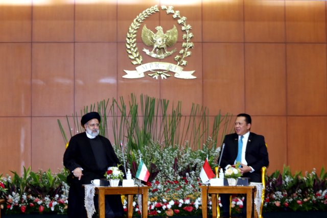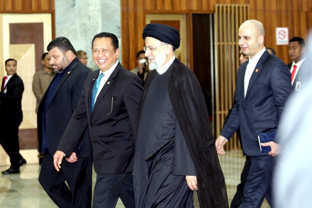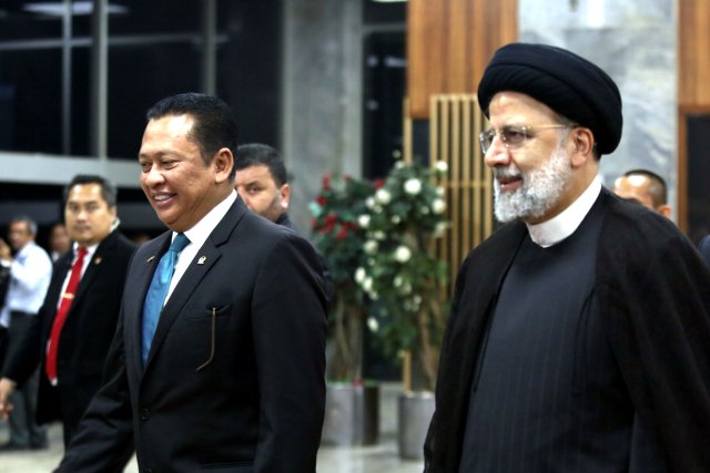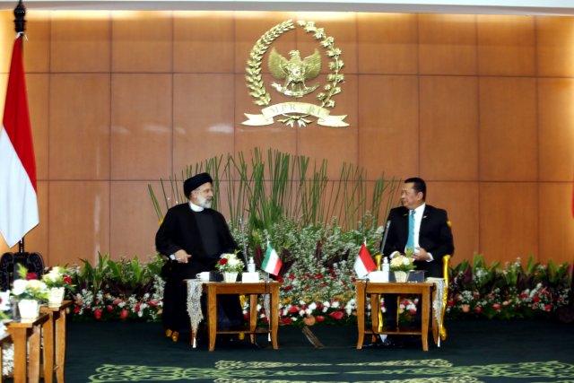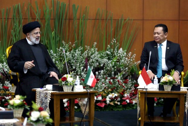 SinarHarapan.id – Ketua MPR RI Bambang Soesatyo (kanan) berbincang dengan Presiden Iran Ebrahim Raeisi (kiri) di ruang delegasi, Gedung Nusantara V, kompleks Parlemen, Senayan, Jakarta, Selasa (23/5/2023). Kunjungan kenegaraan Presiden Republik Islam Iran Seyed Ebrahim Raisi ke Indonesia selama dua hari pada 23-24 Mei atas undangan resmi Presiden Indonesia Joko Widodo. Foto SHID/Elvis Sendouw