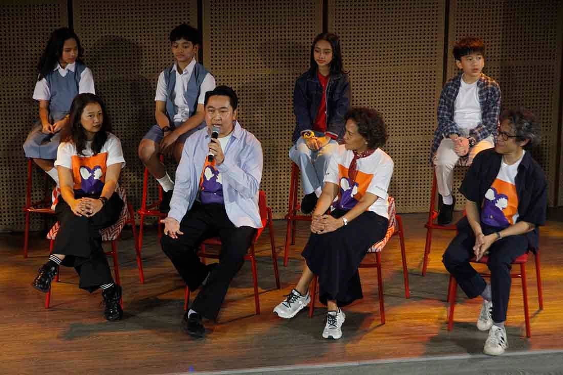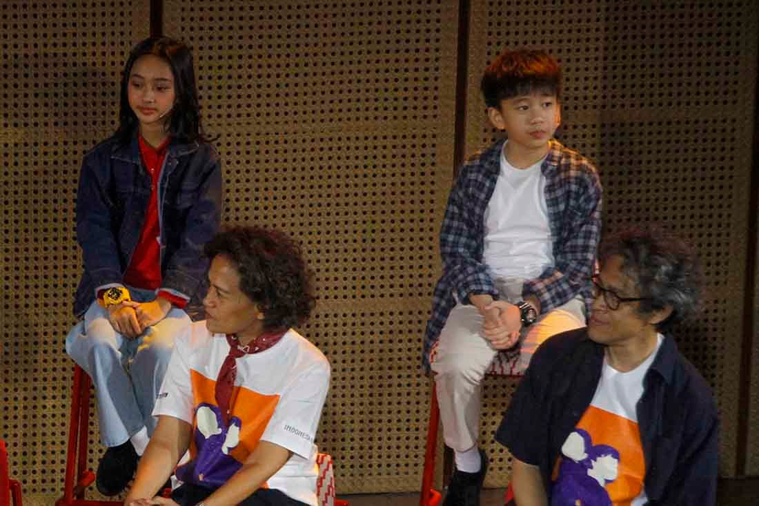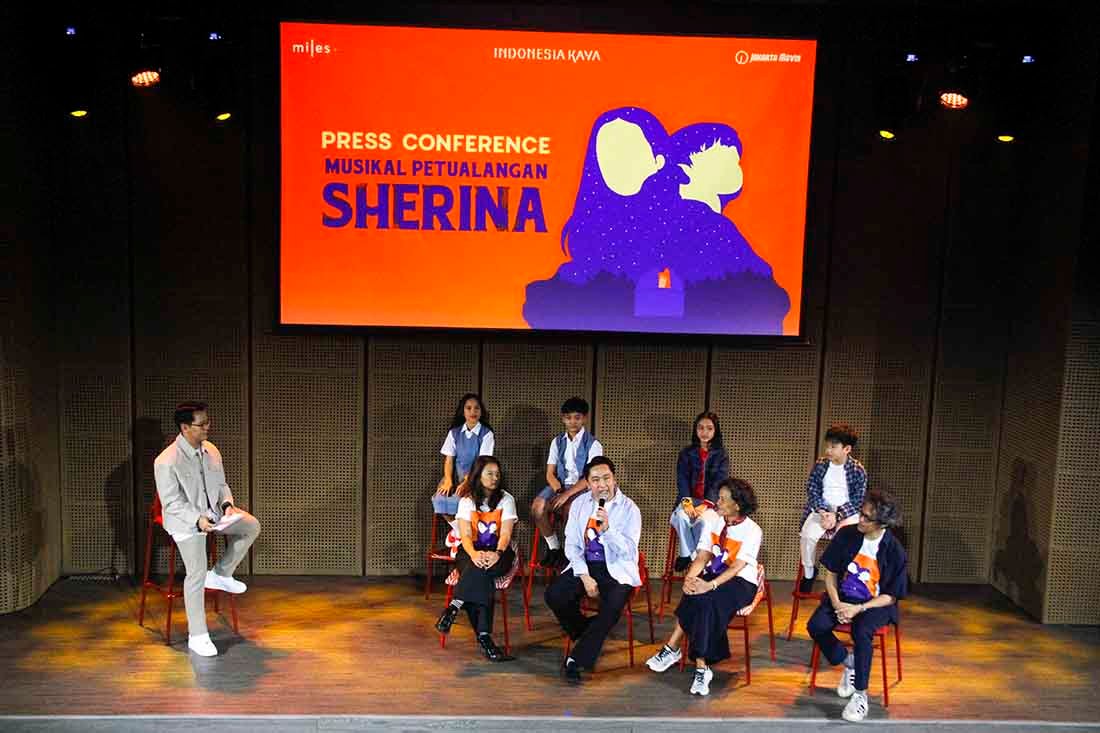 SinarHarapan.id – (kiri-kanan) Sutradara & Produser Musikal Petualangan Sherina (2025), Nuya Susantono, Program Manager Indonesia Kaya, Billy Gamaliel, Produser & Penulis Lirik lagu-lagu film Petualangan Sherina Mira Lesmana dan Sutradara Film Petualangan Sherina (2000) Riri Riza, serta pemeran Sherina dan Sadam dalam Pertunjukan Musikal Petualangan Sherina 2025, memberikan keterangan kepada wartawan di Galeri Indoneaia Kaya, Jakarta, Selasa (1/7/2025). Pertunjukan yang berlangsung 11–20 Juli 2025, menyemarakkan perayaan 25 tahun film Petualangan Sherina. Disutradarai Nuya Susantono dengan membawakan lagu-lagu legendaris ciptaan Elfa Secioria dan Mira Lesmana, pertunjukan ini diharapkan dapat mendekatkan lagi narasi Petualangan Sherina kepada audiens lama dan baru melalui adaptasi baru. Foto: SHID/Ruht Semono