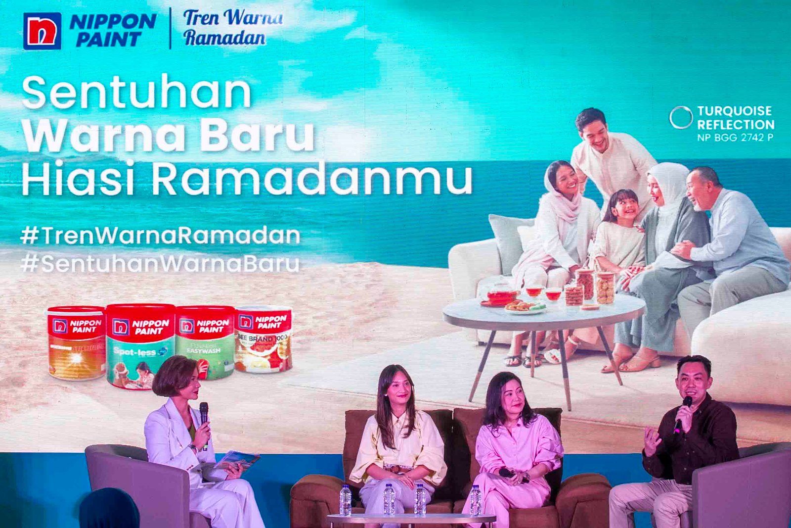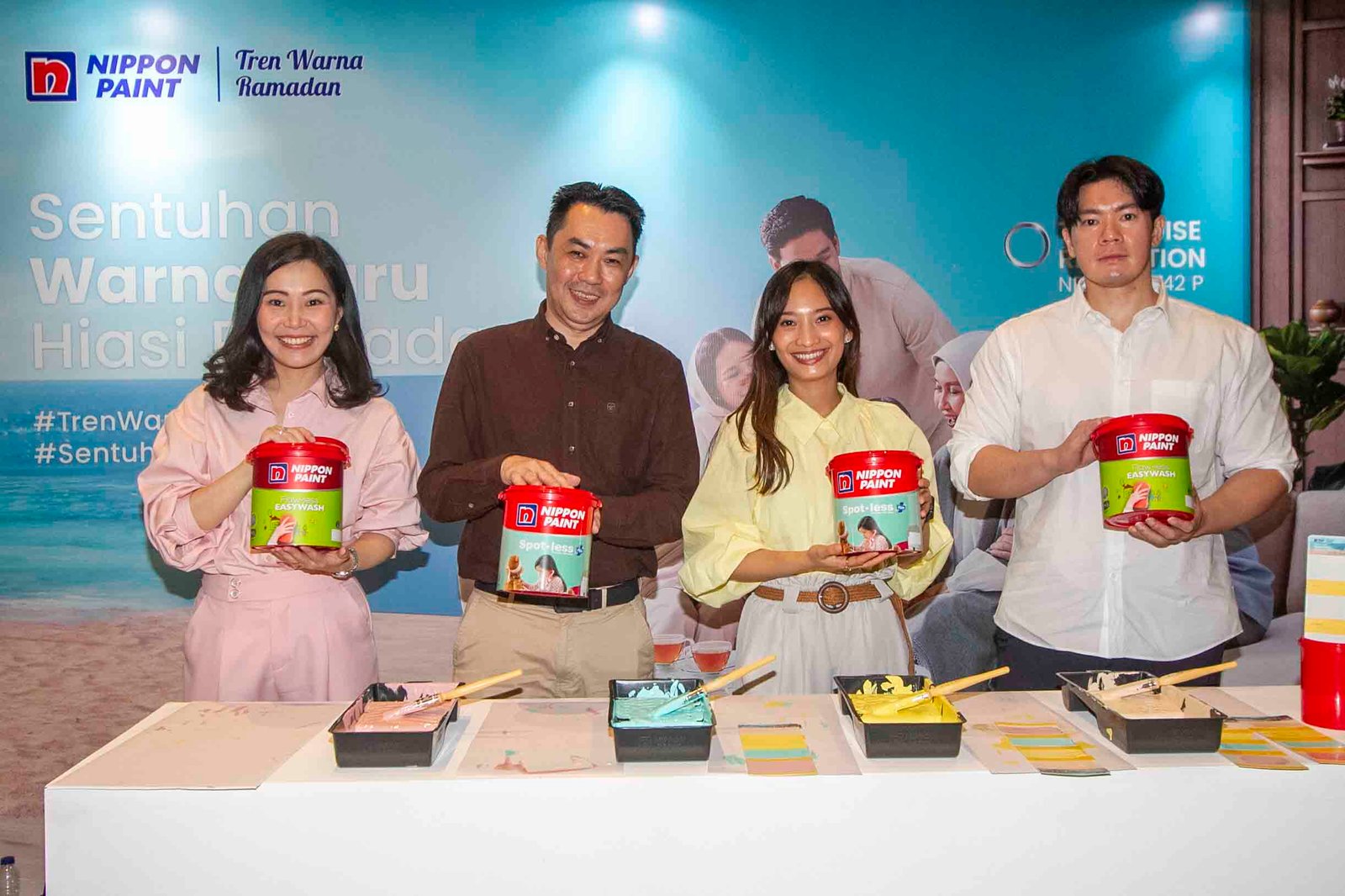 SinarHarapan.id – (kiri ke kanan) Principal Designer of Grace Hartanti Design Lab Grace Hartanti, General Manager (TU Division) Nippon Paint Indonesia Mark Liew, Principal Designer of Suasana Studio Aghnia Fuad dan Interior Architect & Co-Founder of Pottum & RAKRAK Vidianto Hasan pada acara peluncuran Tren Warna Ramadan 2024 Nippon Paint di Jakarta, Kamis (7/3/2024). Ramadan menjadi momen yang sangat dinantikan umat Muslim di seluruh dunia. Perubahan suasana di bulan yang istimewa semakin terasa tak hanya dalam aktivitas religi namun juga dapat tercipta melalui sentuhan warna baru di rumah. Keindahan Ramadan dalam sentuhan warna baru yang membawa nuansa penuh makna ini terwujud dalam Tren Warna Ramadan 2024 persembahan Nippon Paint dengan mengusung empat tema utama, yaitu Find Calm, Find Balance, Find Freedom, dan Find Renewal.