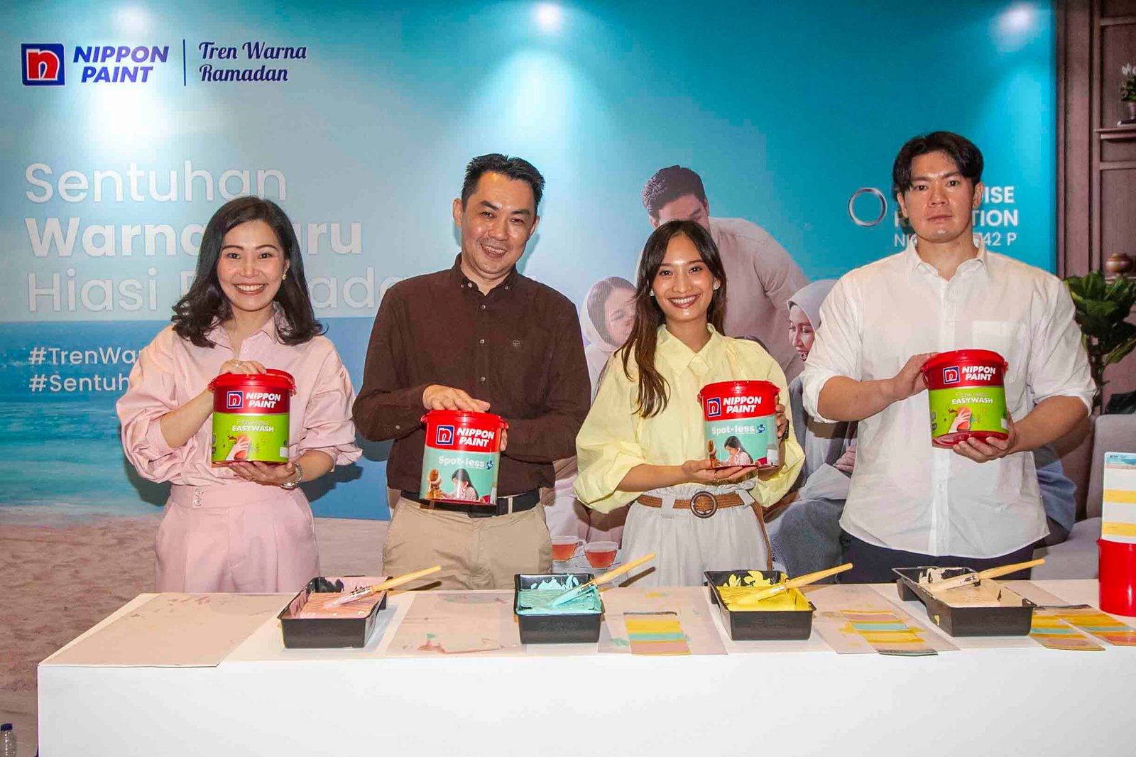 SinarHarapan.id – (kiri ke kanan)  Principal Designer of Grace Hartanti Design Lab  Grace Hartanti,  General Manager (TU Division) Nippon Paint Indonesia Mark Liew,  Principal Designer of Suasana Studio Aghnia Fuad  dan  Interior Architect & Co-Founder of Pottum & RAKRAK Vidianto Hasan pada acara peluncuran Tren Warna Ramadan 2024 Nippon Paint di Jakarta, Kamis (7/3/2024). Ramadan menjadi momen yang sangat dinantikan umat Muslim di seluruh dunia. Perubahan suasana di bulan yang istimewa semakin terasa tak hanya dalam aktivitas religi namun juga dapat tercipta melalui sentuhan warna baru di rumah. Keindahan Ramadan dalam sentuhan warna baru yang membawa nuansa penuh makna ini terwujud dalam Tren Warna Ramadan 2024 persembahan Nippon Paint dengan mengusung empat tema utama, yaitu Find Calm, Find Balance, Find Freedom, dan Find Renewal.