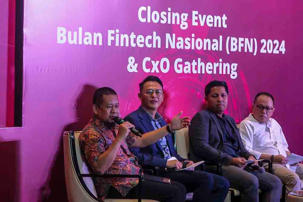 SinarHarapan.id – Head of Digital Economy CIMB Niaga Dedy Sahat (kedua kiri) bersama Deputi Direktur Departemen Kebijakan Sistem Pembayaran Bank Indonesia (BI) Novyanto (kiri), Presiden Direktur ShopeePay Indonesia Radityo Triatmojo (kedua kaban), dan Direktur Government Relations Xendit Group Rifai Taberi (kanan) saat diskusi panel Event Closing Bulan Fintech Nasional (BFN) bertema “Integrating Innovation: Empowering Digital Growth and Financial Inclusion through Bank-Fintech Collaboration” di Jakarta, Kamis (12/12/2024). Partisipasi CIMB Niaga dalam BFN 2024 merupakan wujud komitmen untuk terus memperkuat kerja sama antara perbankan dengan fintech. Salah satu wujud dukungan tersebut yaitu meyediakan layanan CIMB Niaga API (Application Programming Interface) yang memudahkan integrasi teknologi untuk mitra fintech, sehingga proses pembukaan rekening digital, pembayaran tagihan, hingga transaksi berbasis QRIS dapat berjalan lebih cepat, aman, dan efisien. Foto: SHID/Ruht Semiono